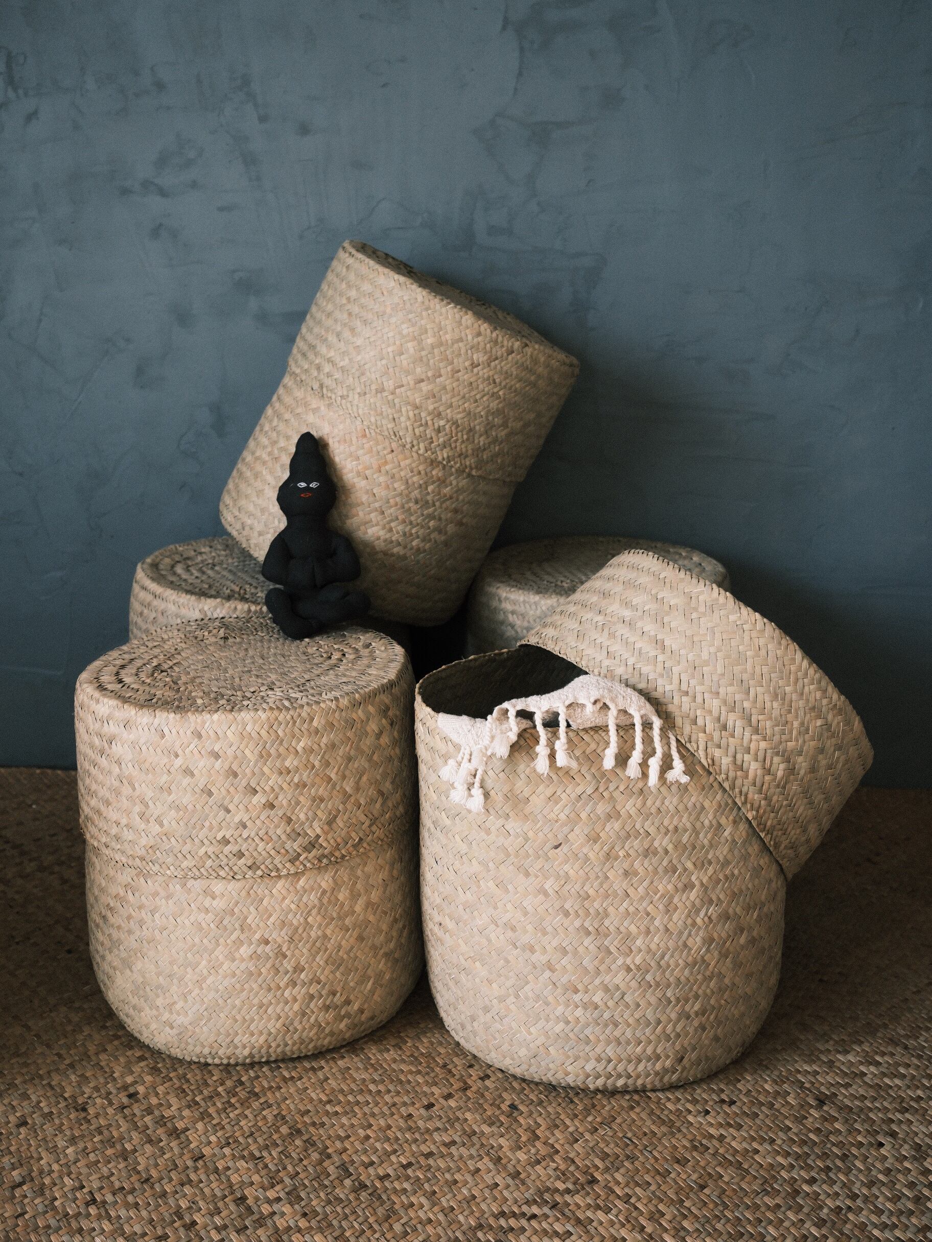 カチュー(水草)コロンと丸いドラム型収納ボックス Natural (SOFT) 柔らかい質感