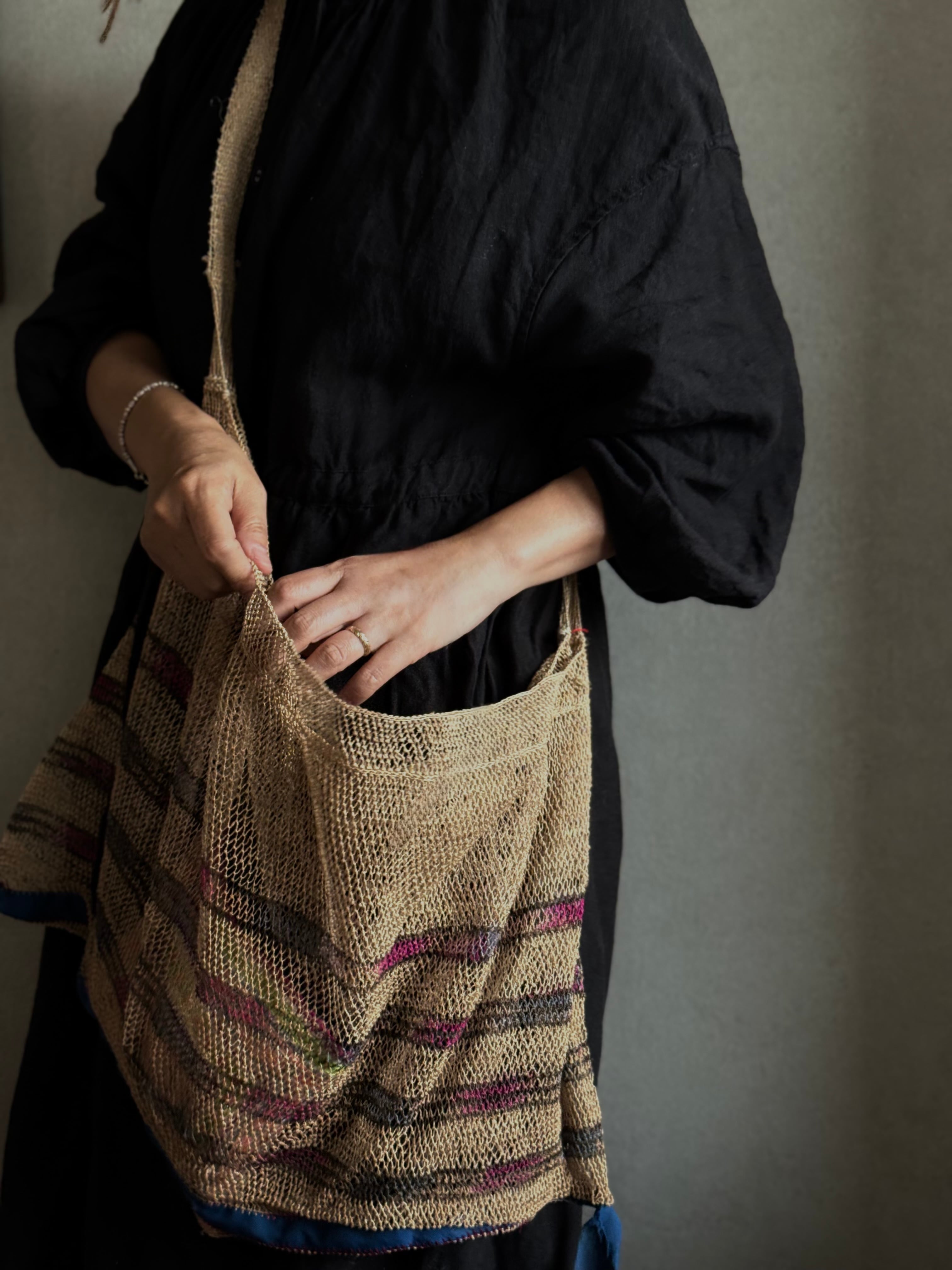 ⚠︎全てカム族によるハンドメイドで自然素材を使用しておりますので、編み目や角の紐の長さの不揃い感、歪み等あり、色味も均一ではないですが手作業から生まれる味わいとしてお楽しみいただければ幸いです。