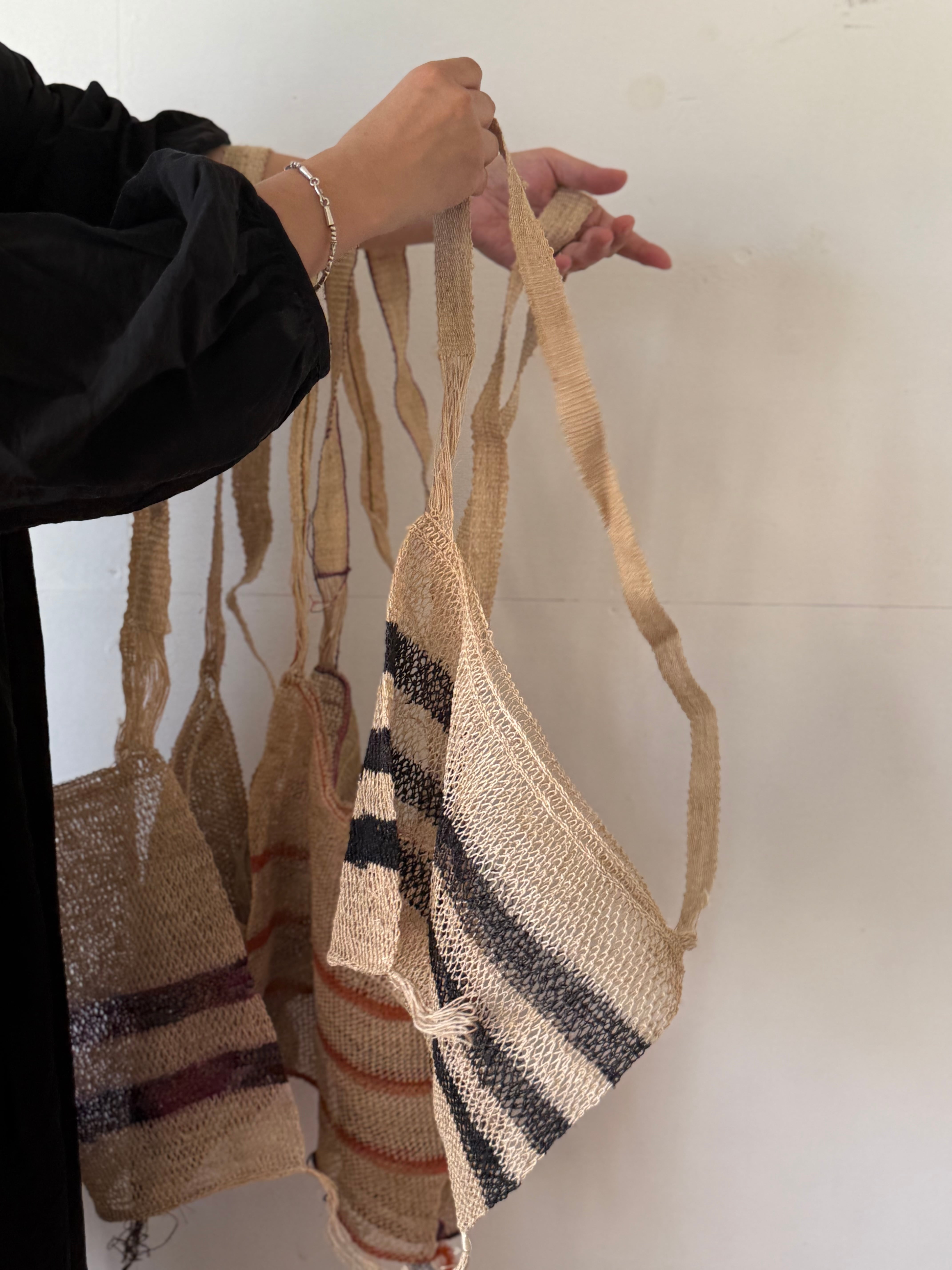 ⚠︎全てカム族によるハンドメイドで自然素材を使用しておりますので、編み目や角の紐の長さの不揃い感、歪み等あり、色味も均一ではないですが手作業から生まれる味わいとしてお楽しみいただければ幸いです。