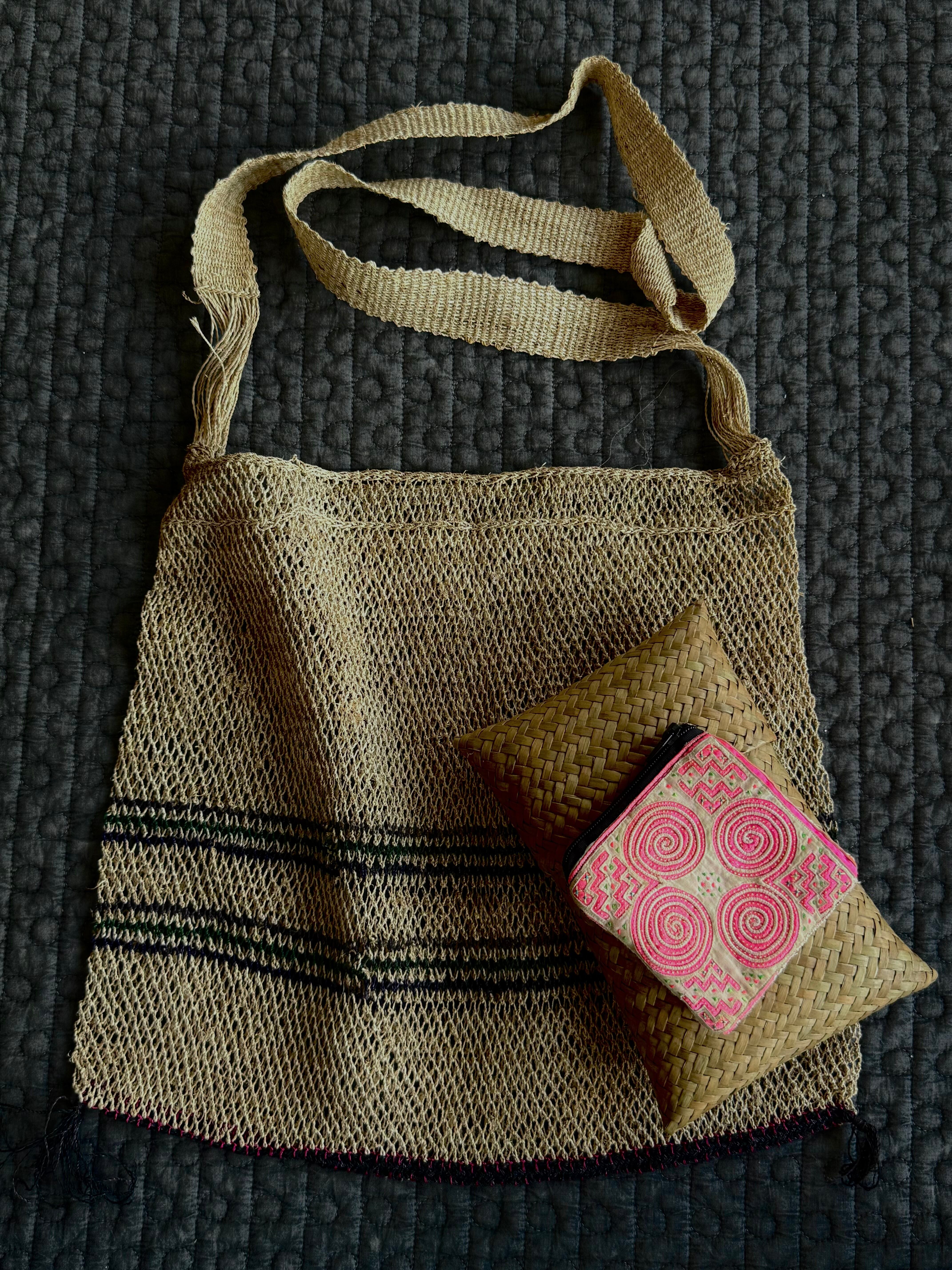 ラオス カム族 葛ショルダーバッグ ボーダー DD ネコポス送料¥390