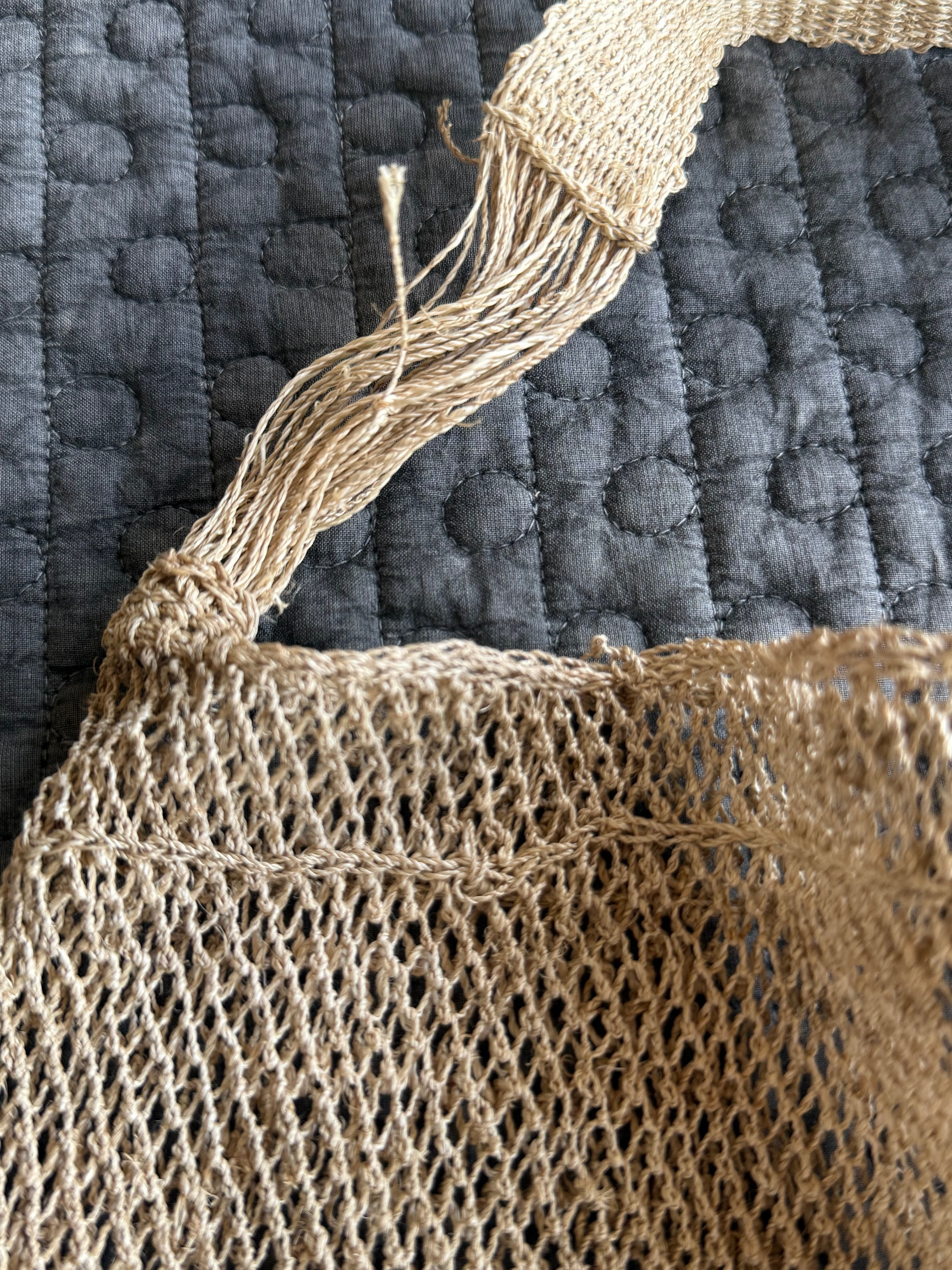 ⚠︎全てカム族によるハンドメイドで自然素材を使用しておりますので、編み目や角の紐の長さの不揃い感、歪み等あり、色味も均一ではないですが手作業から生まれる味わいとしてお楽しみいただければ幸いです。