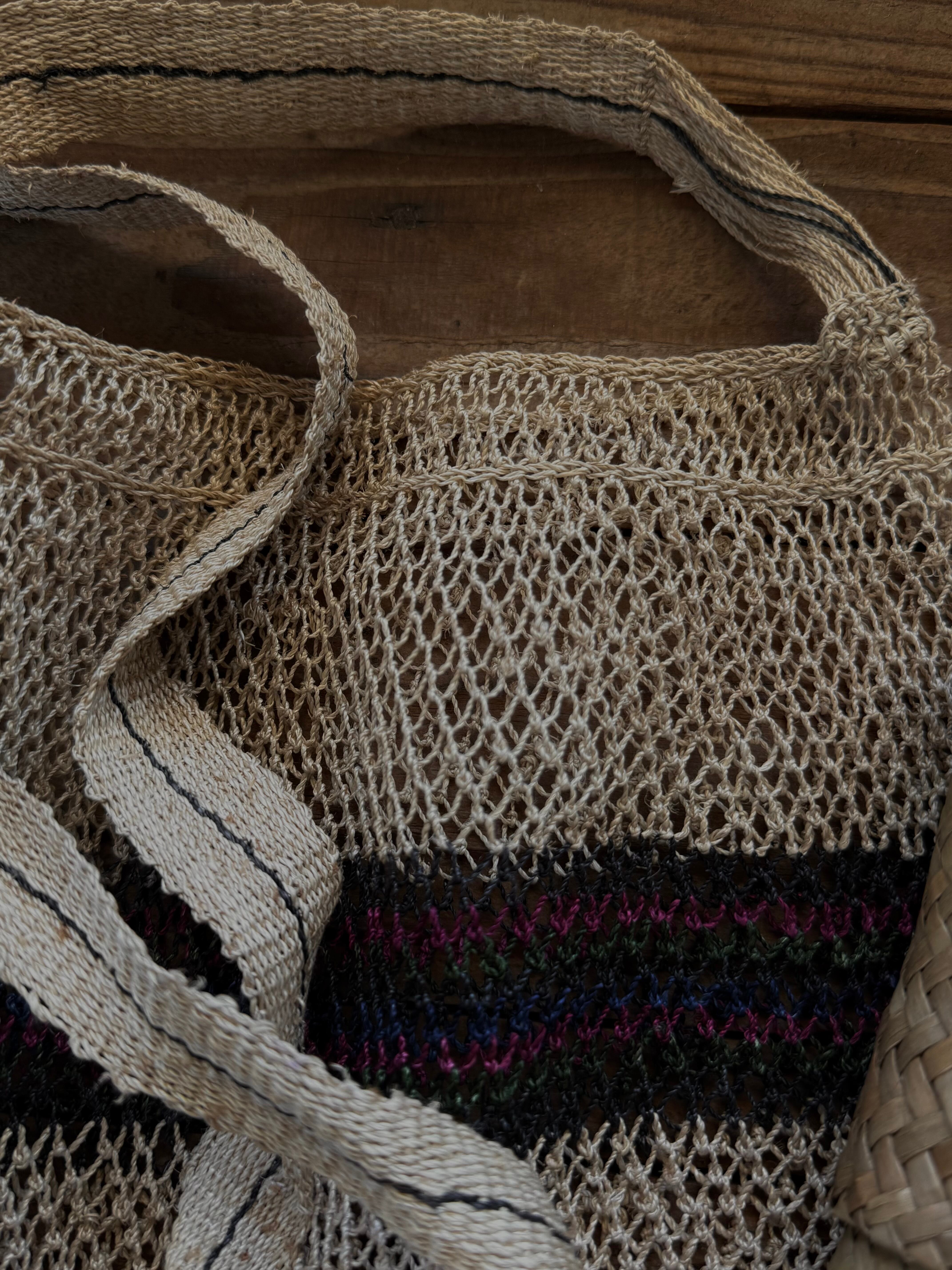 ⚠︎全てカム族によるハンドメイドで自然素材を使用しておりますので、編み目や角の紐の長さの不揃い感、歪み等あり、色味も均一ではないですが手作業から生まれる味わいとしてお楽しみいただければ幸いです。