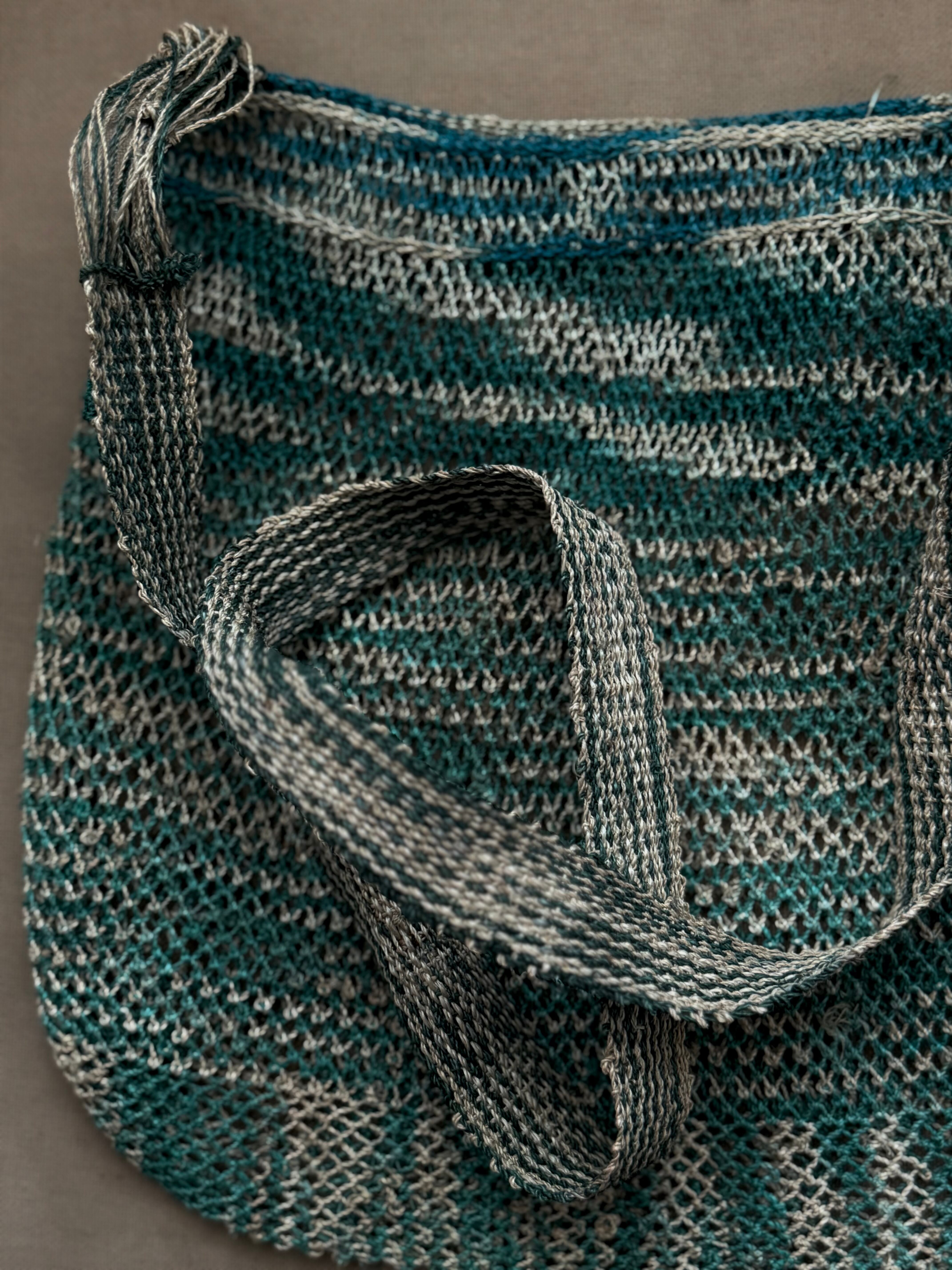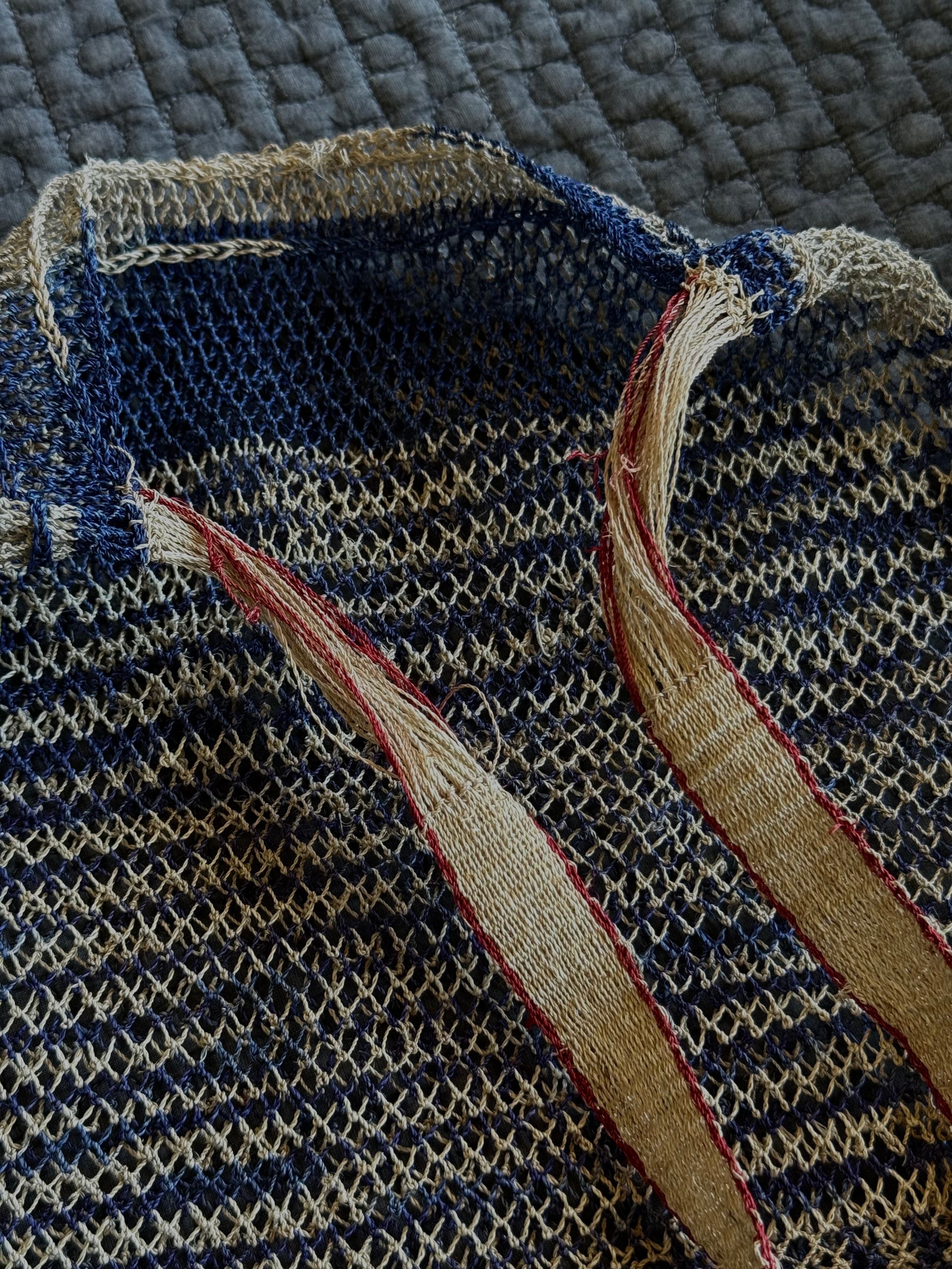 ラオス カム族 葛ショルダーバッグ Blue マチの編み目が違うタイプ ネコポス送料¥390
