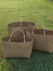 持ち手はバナナリーフと葦という水辺に生息する植物によって