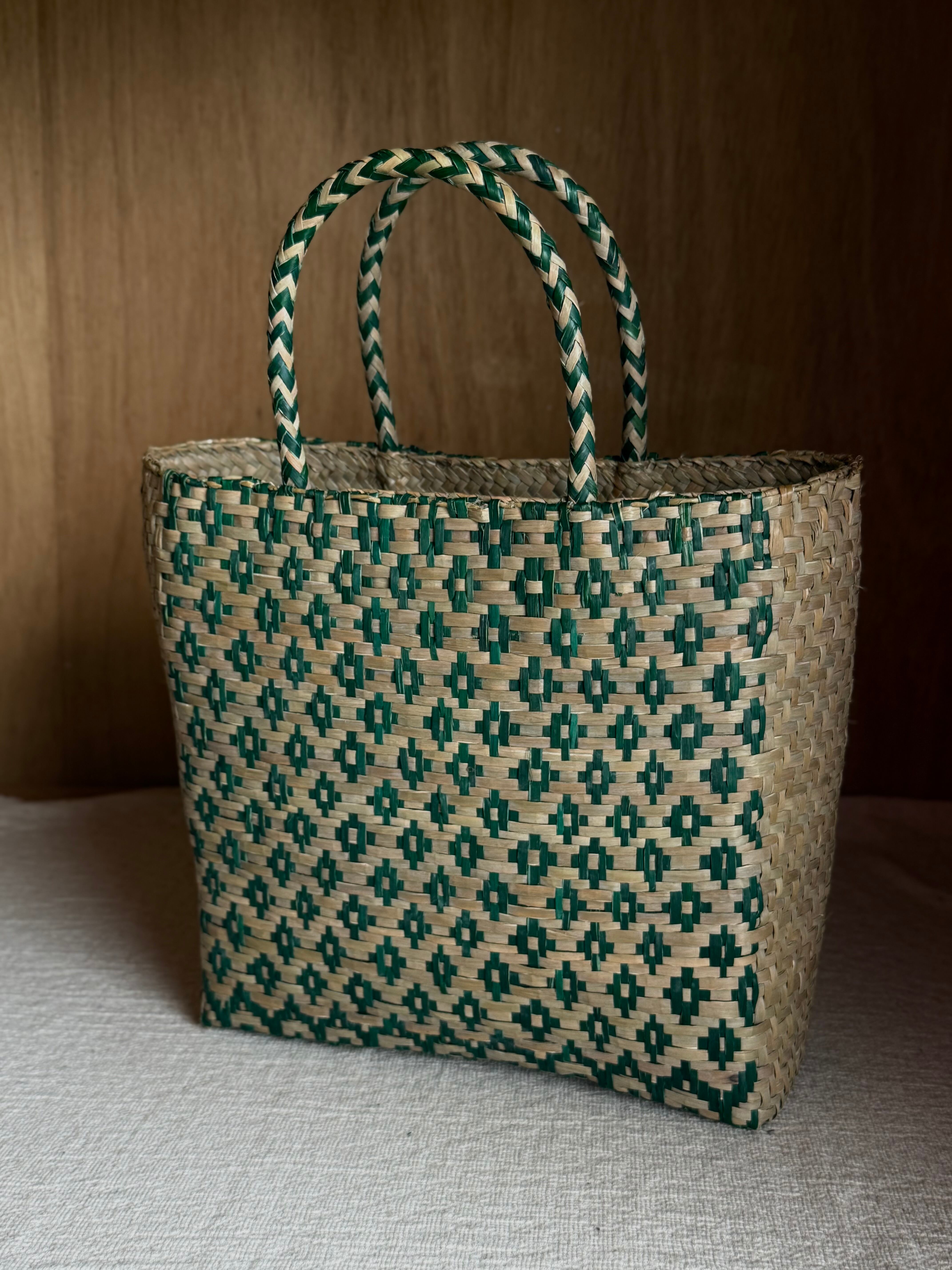 珍しい編み目とグリーンのデザインが上品なトートバッグです。