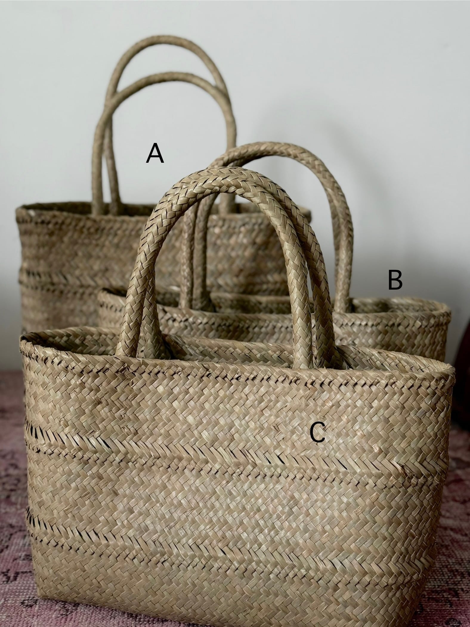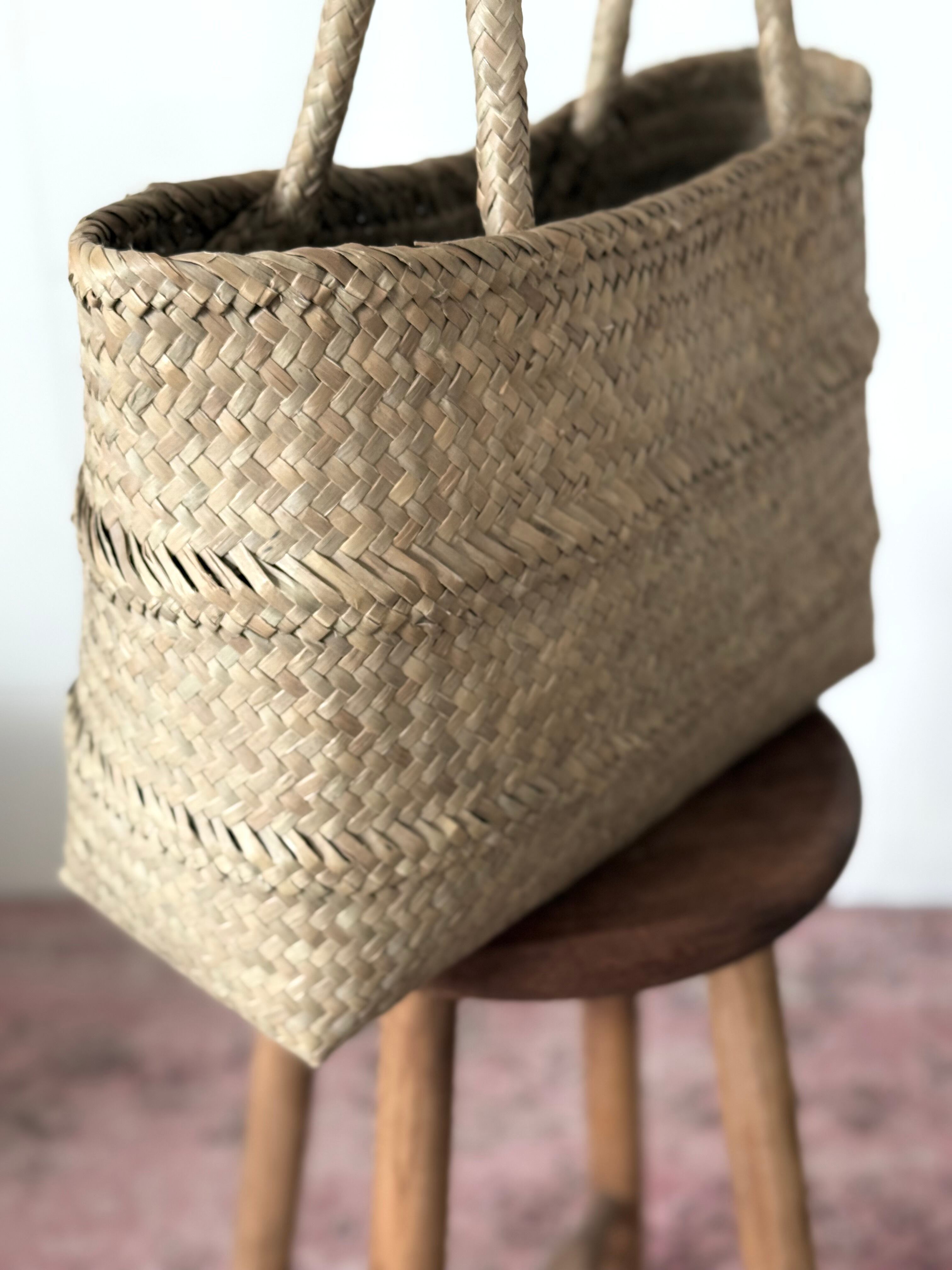 カチュー(水草)を丁寧に編み込んだトートバッグ。