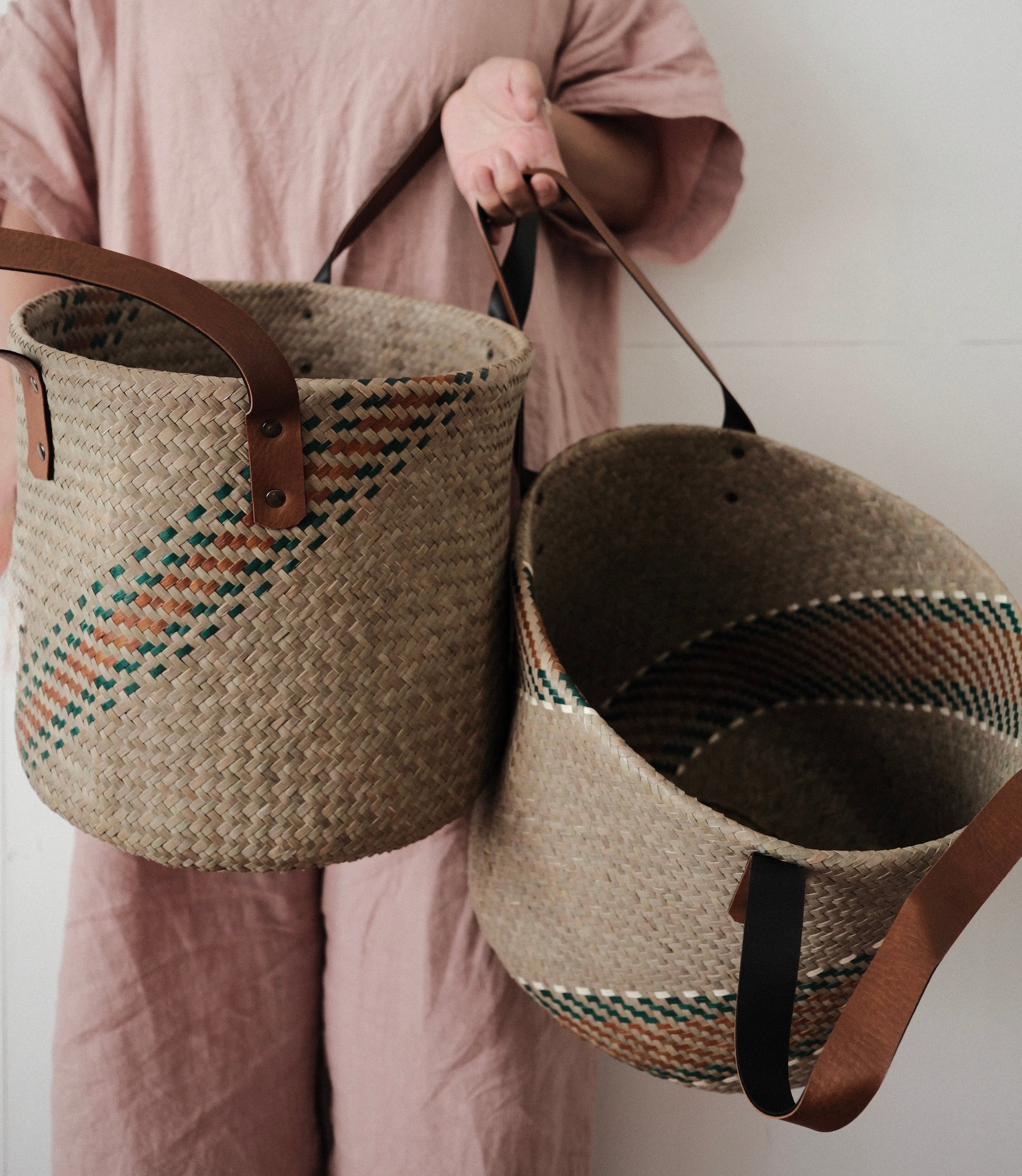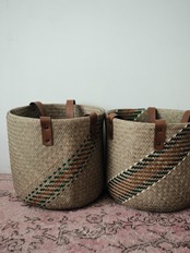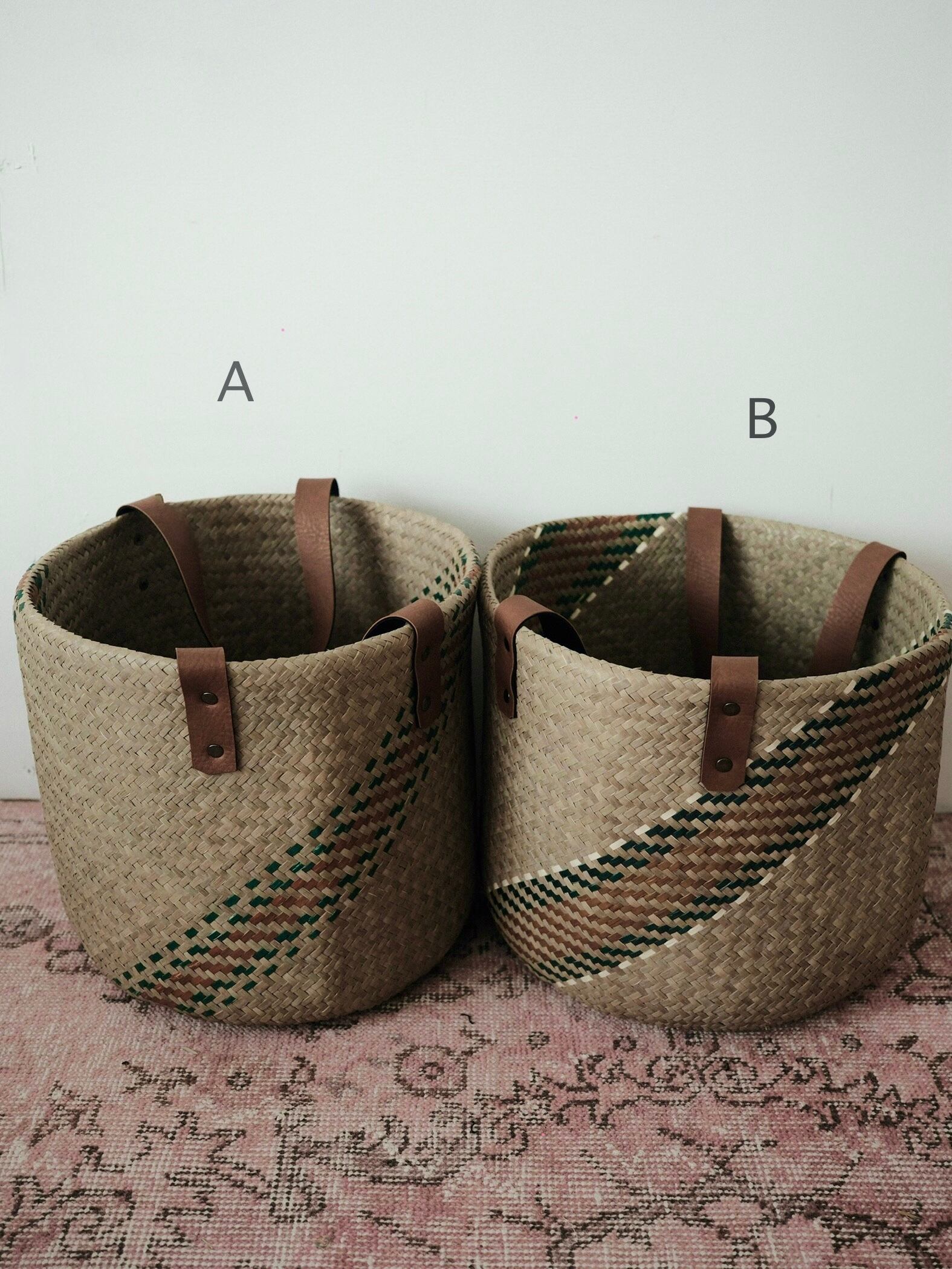 カチュー(水草)ハンドル付き Natural Laundry Basket M 柔らかい質感