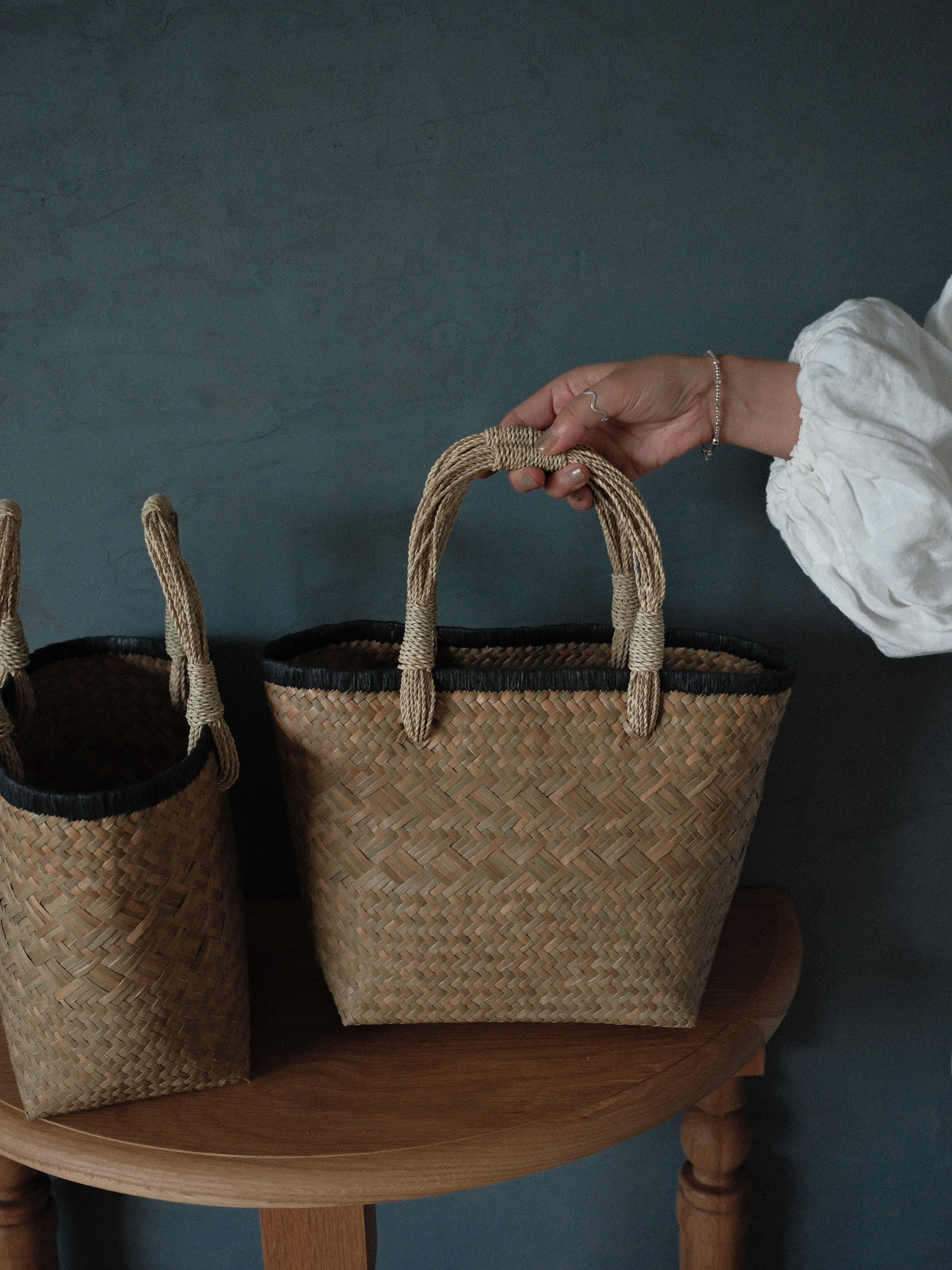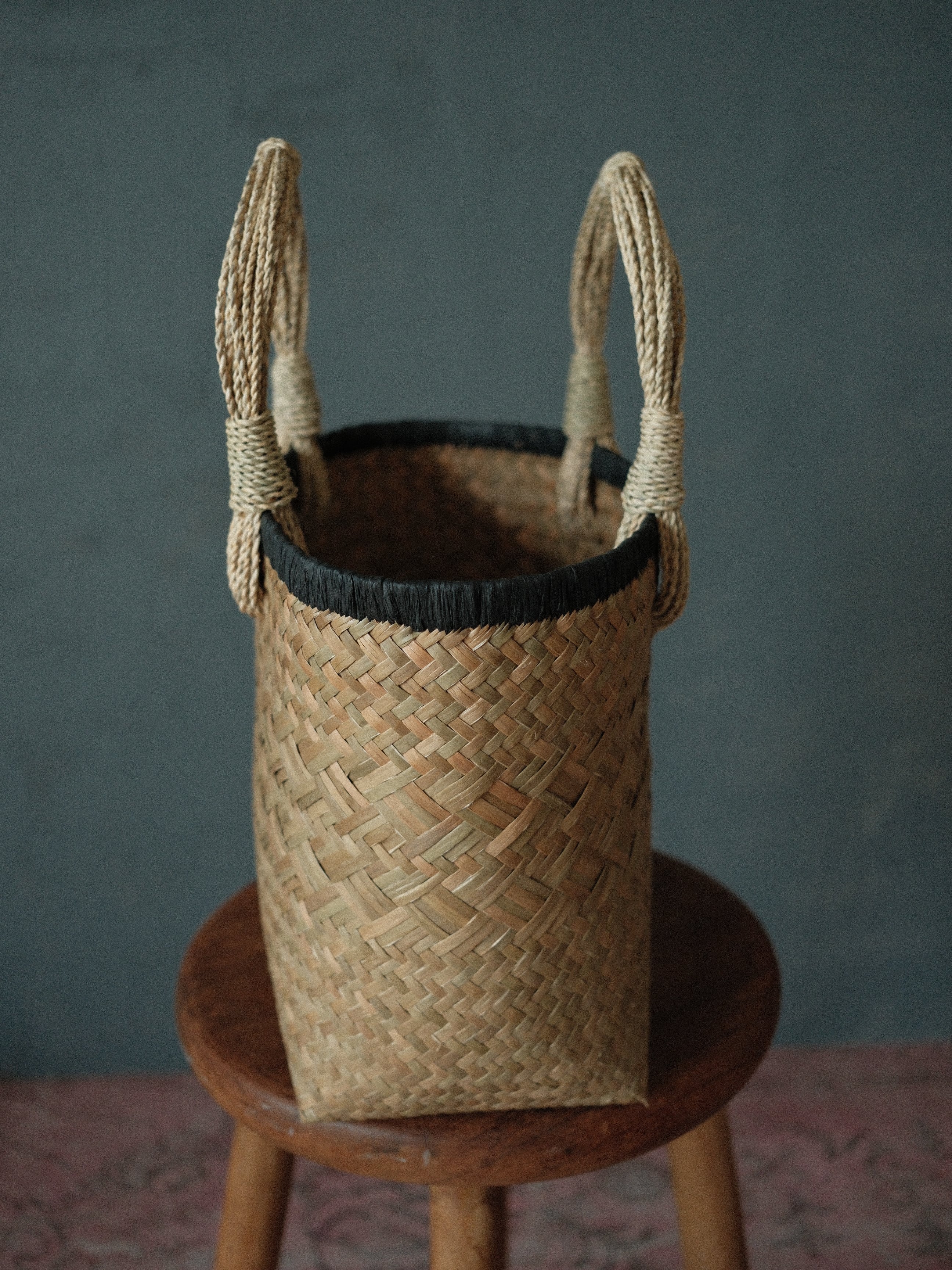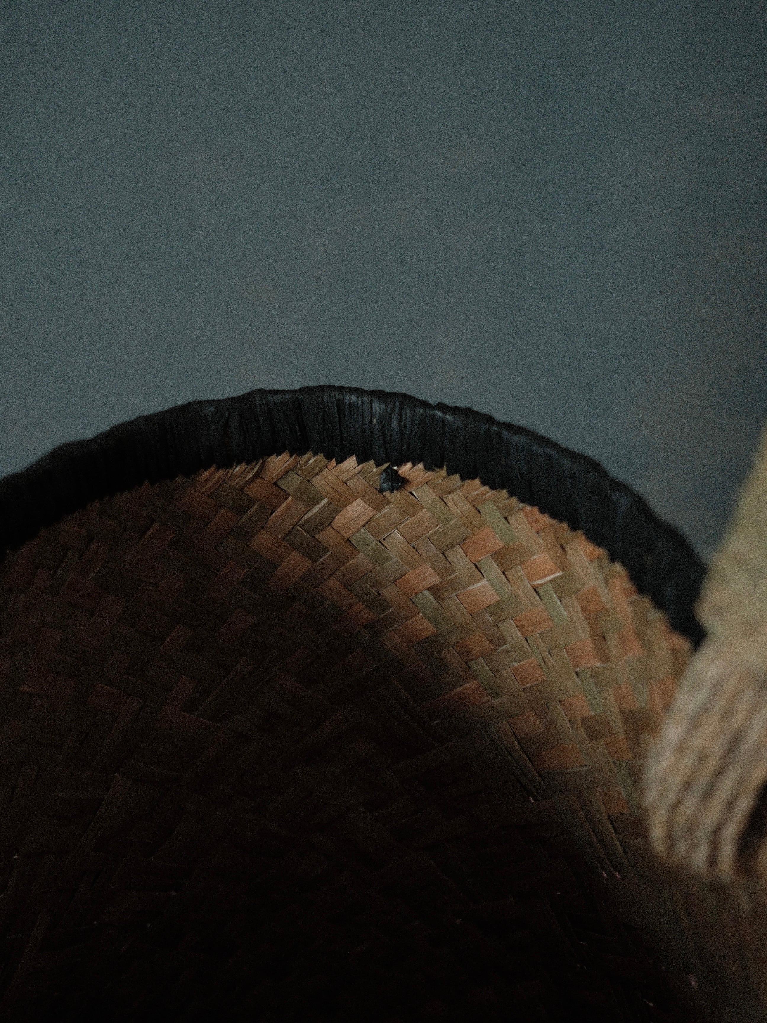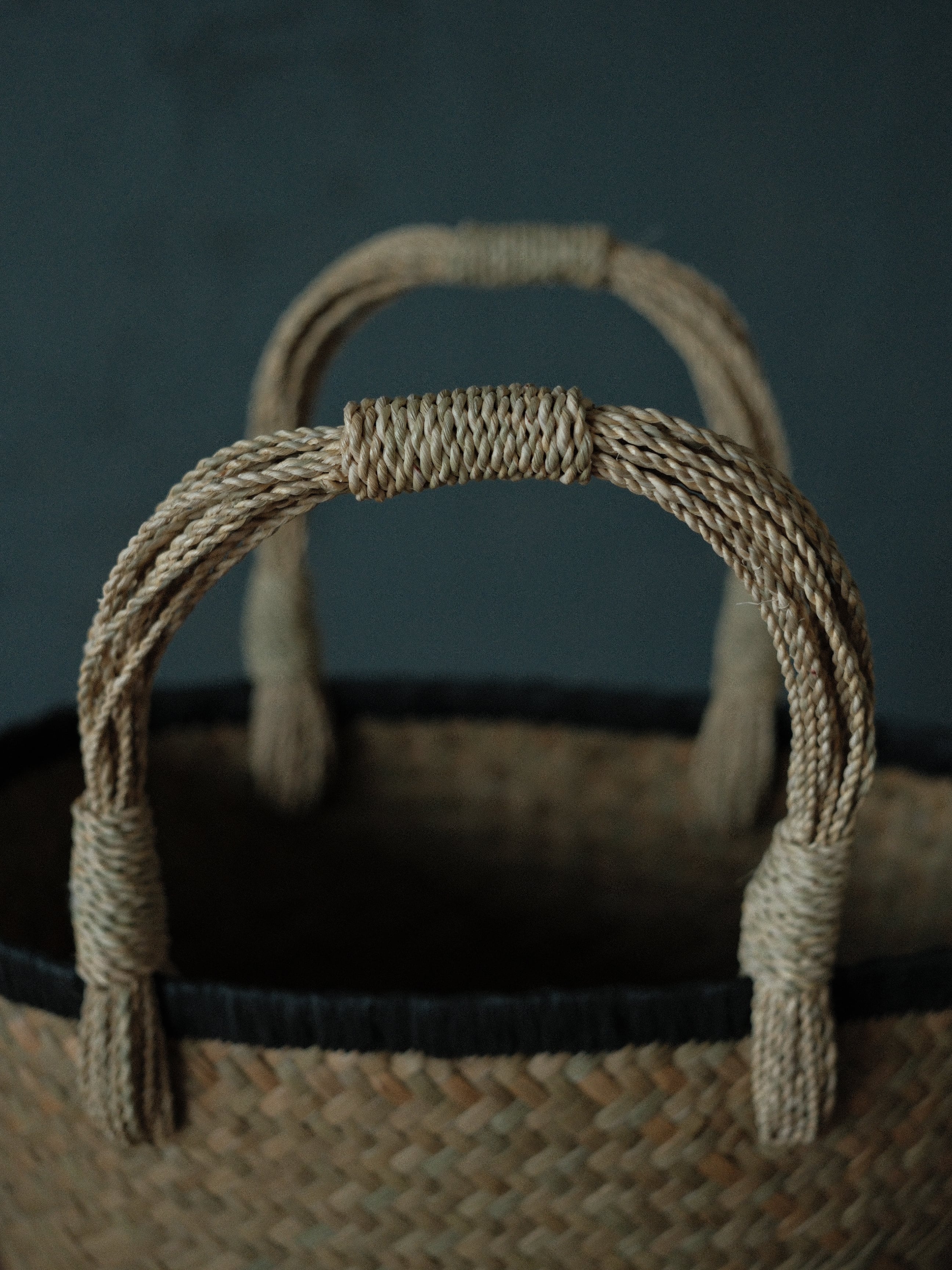 持ち手は葦を編みこんだ紐を束ねて作られており、