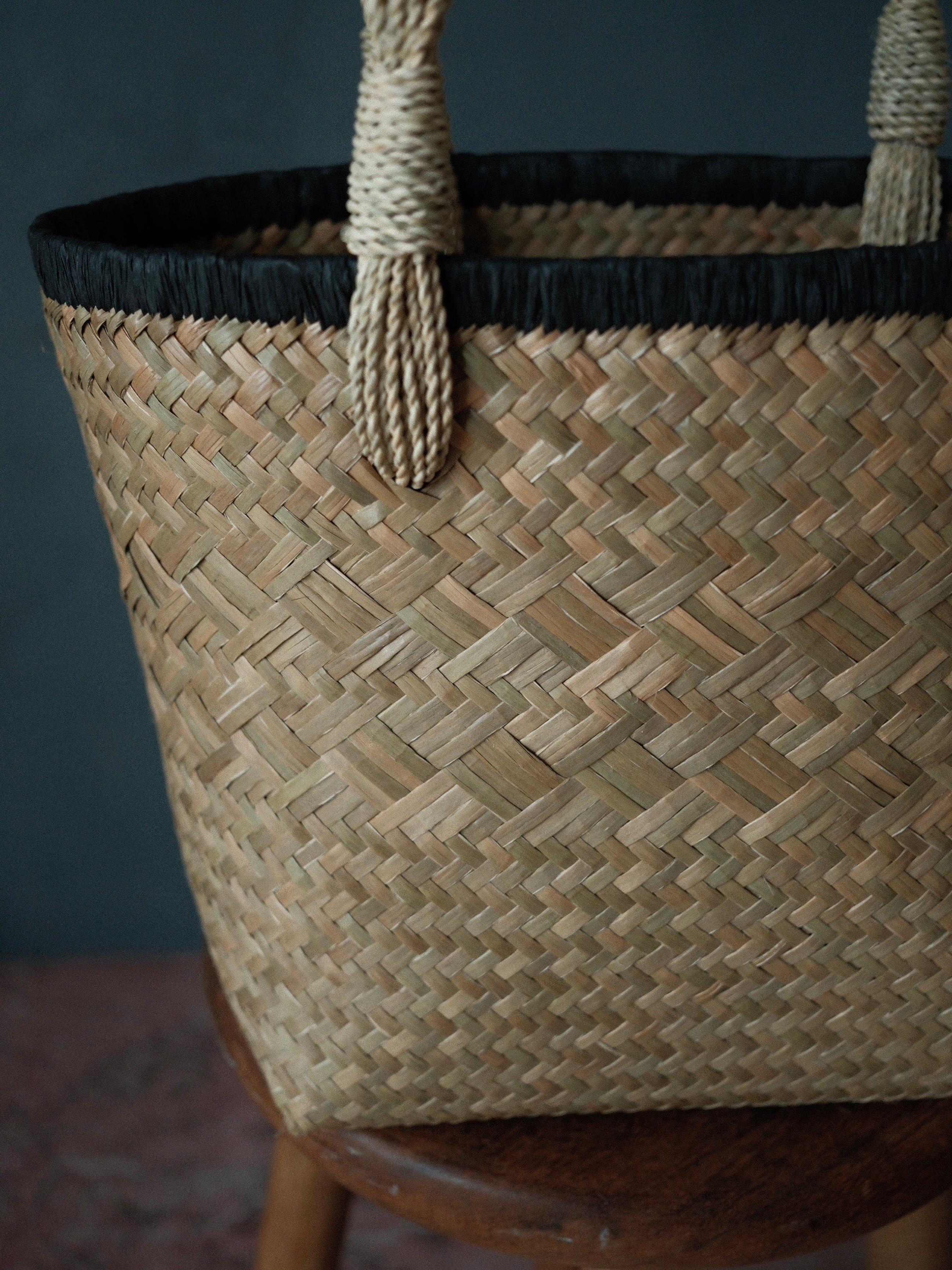 ひと針ひと針丁寧に縁取りを施した水草トートバッグ SUMI BLACK(SOFT)