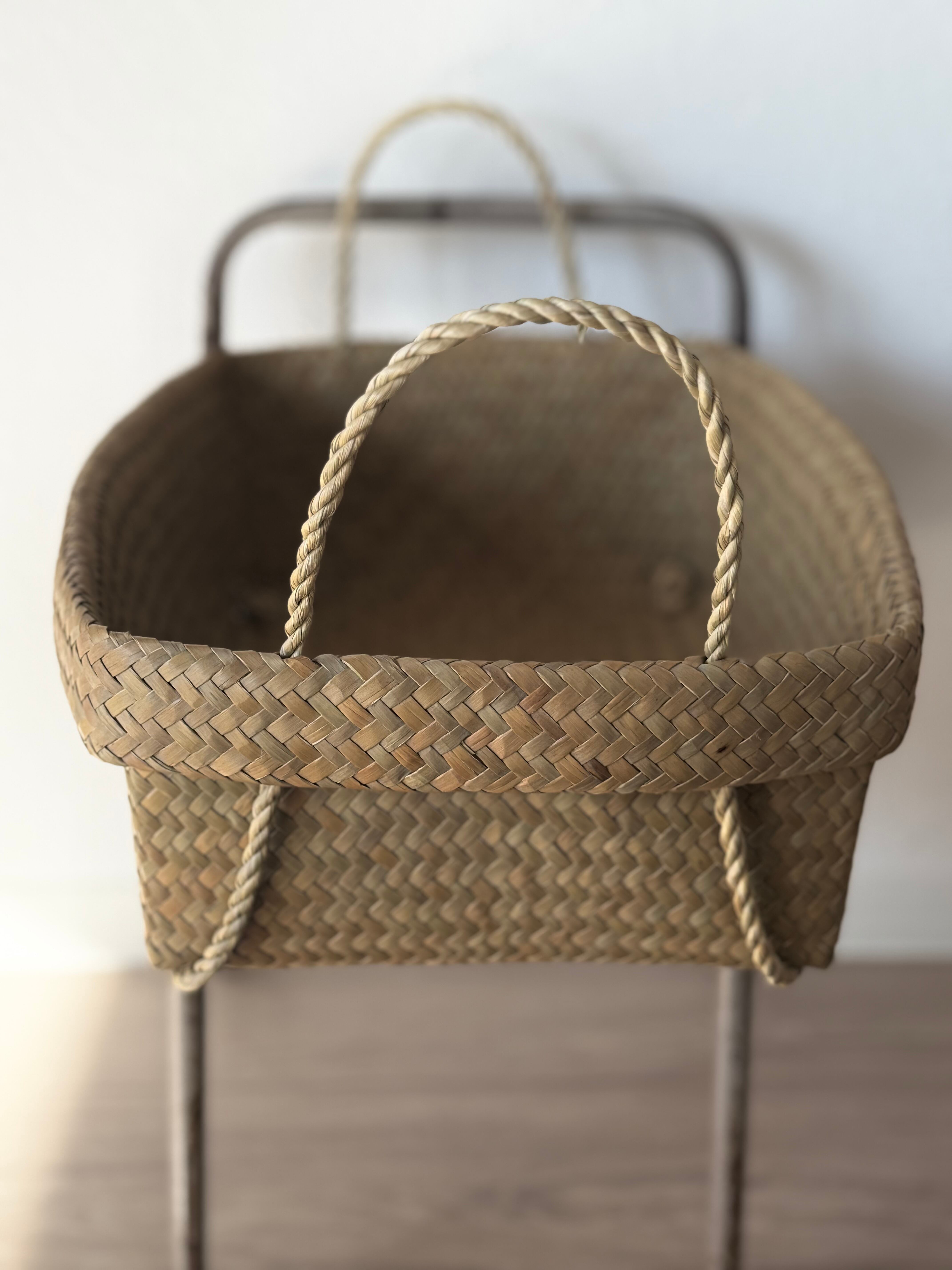水草を丁寧に編んで仕上げたハンドル付きバスケット。