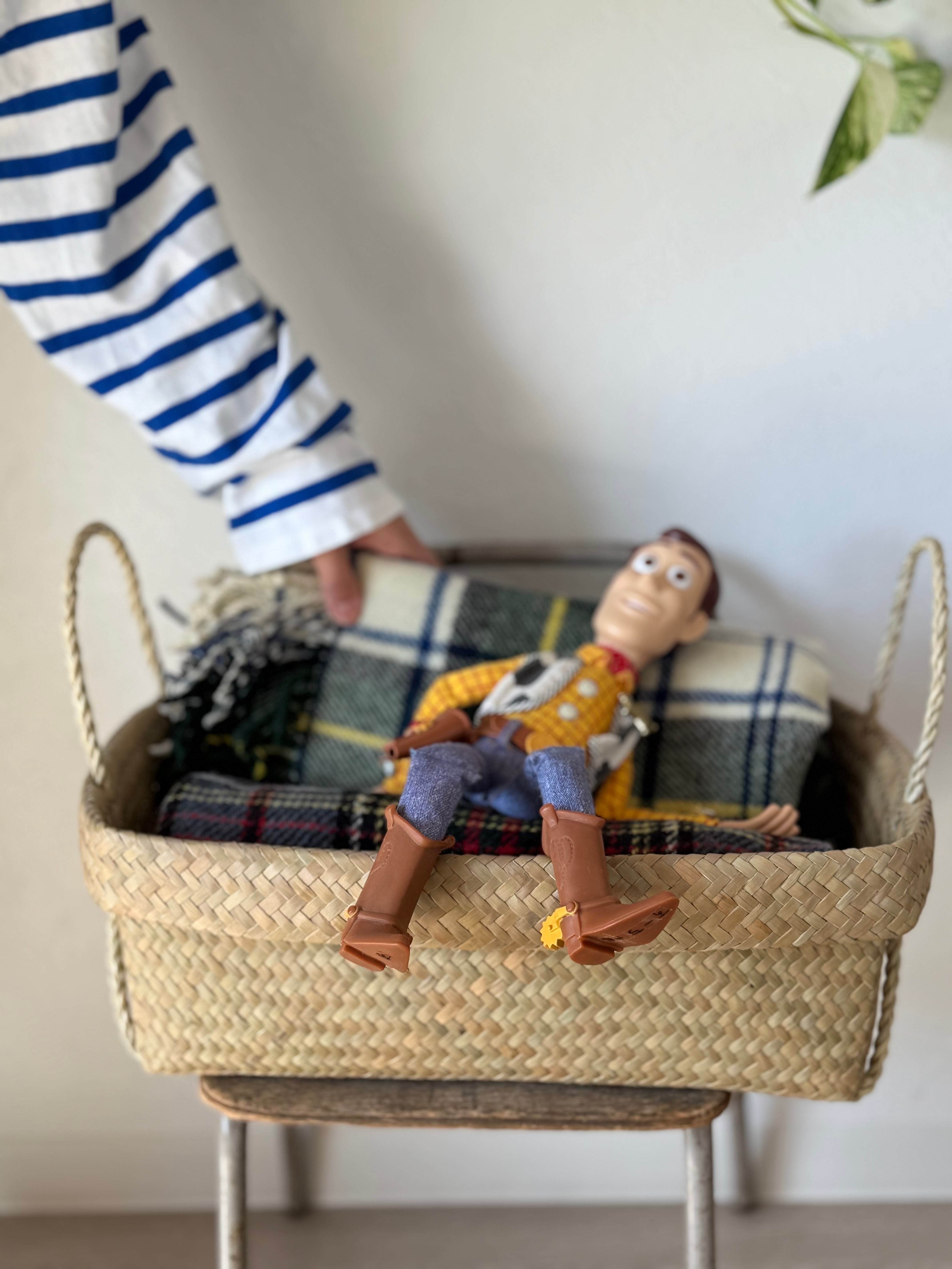 上に布や小さなブランケットをふわりとかけて中身をやさしく目隠しに。