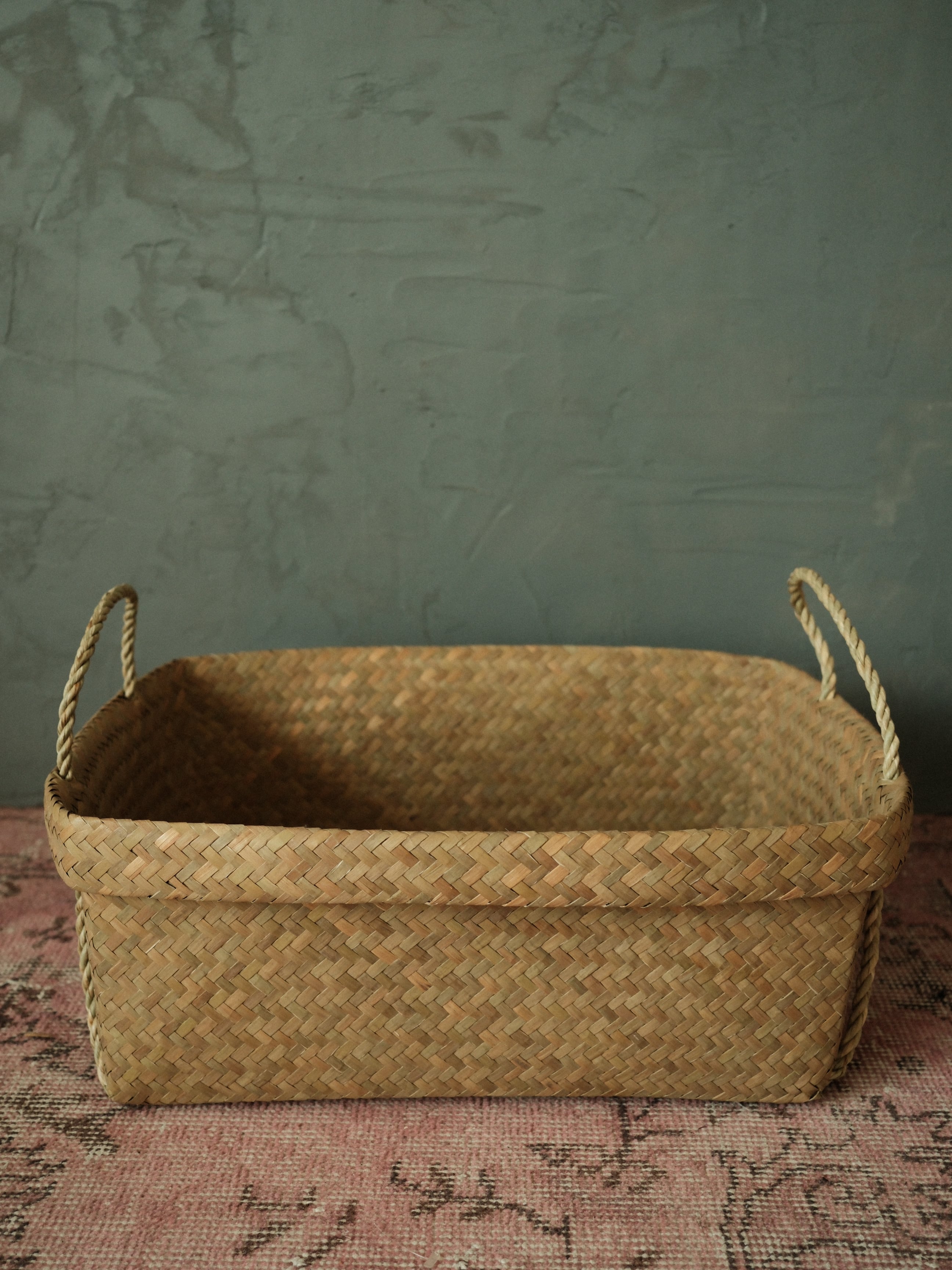 <再入荷> カチュー (水草)底が浅いハンドル付きバスケット (SOFT)柔らかい質感