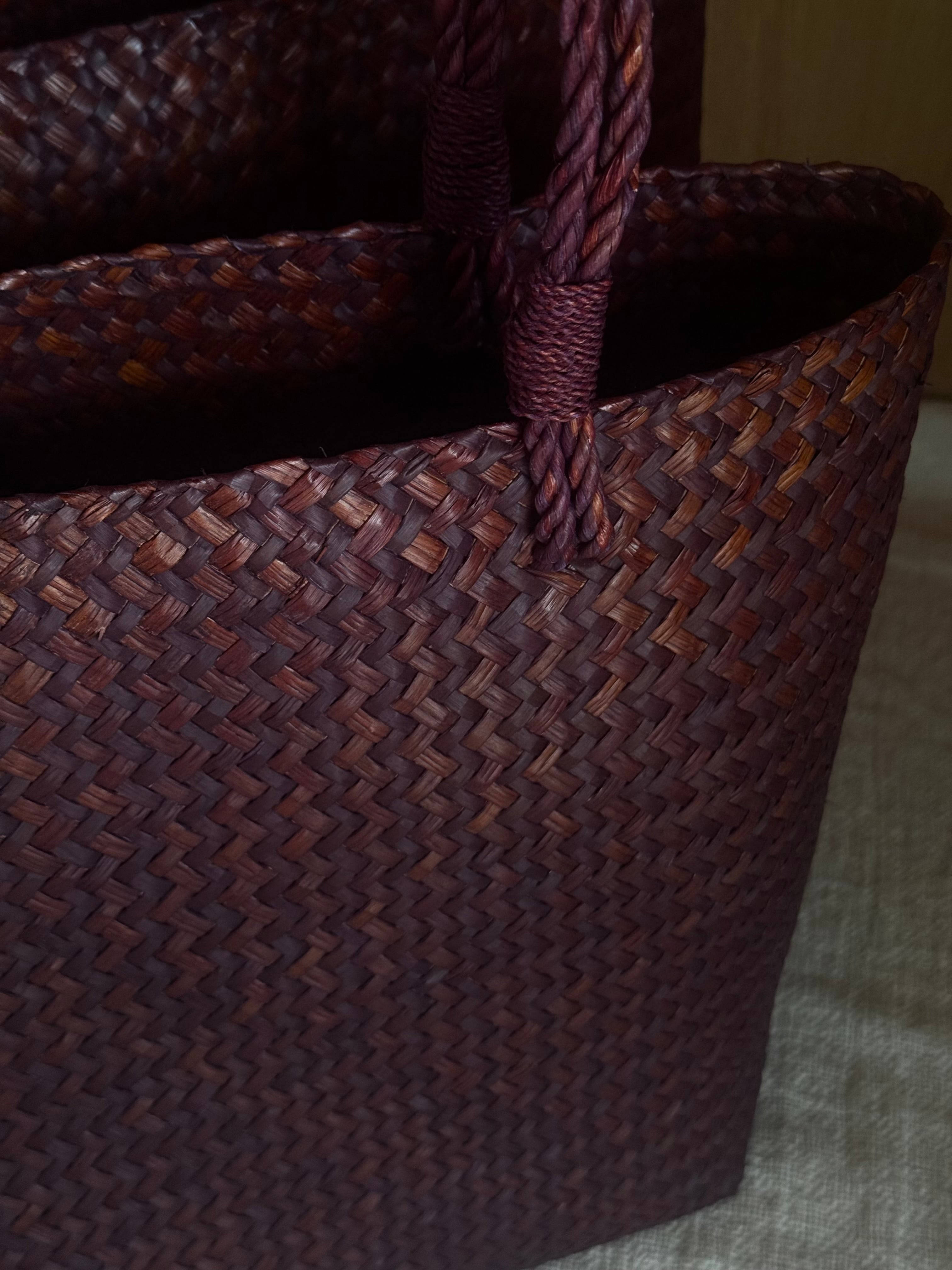 持ち手は2本のバナナリーフを束ねて編んだもの。