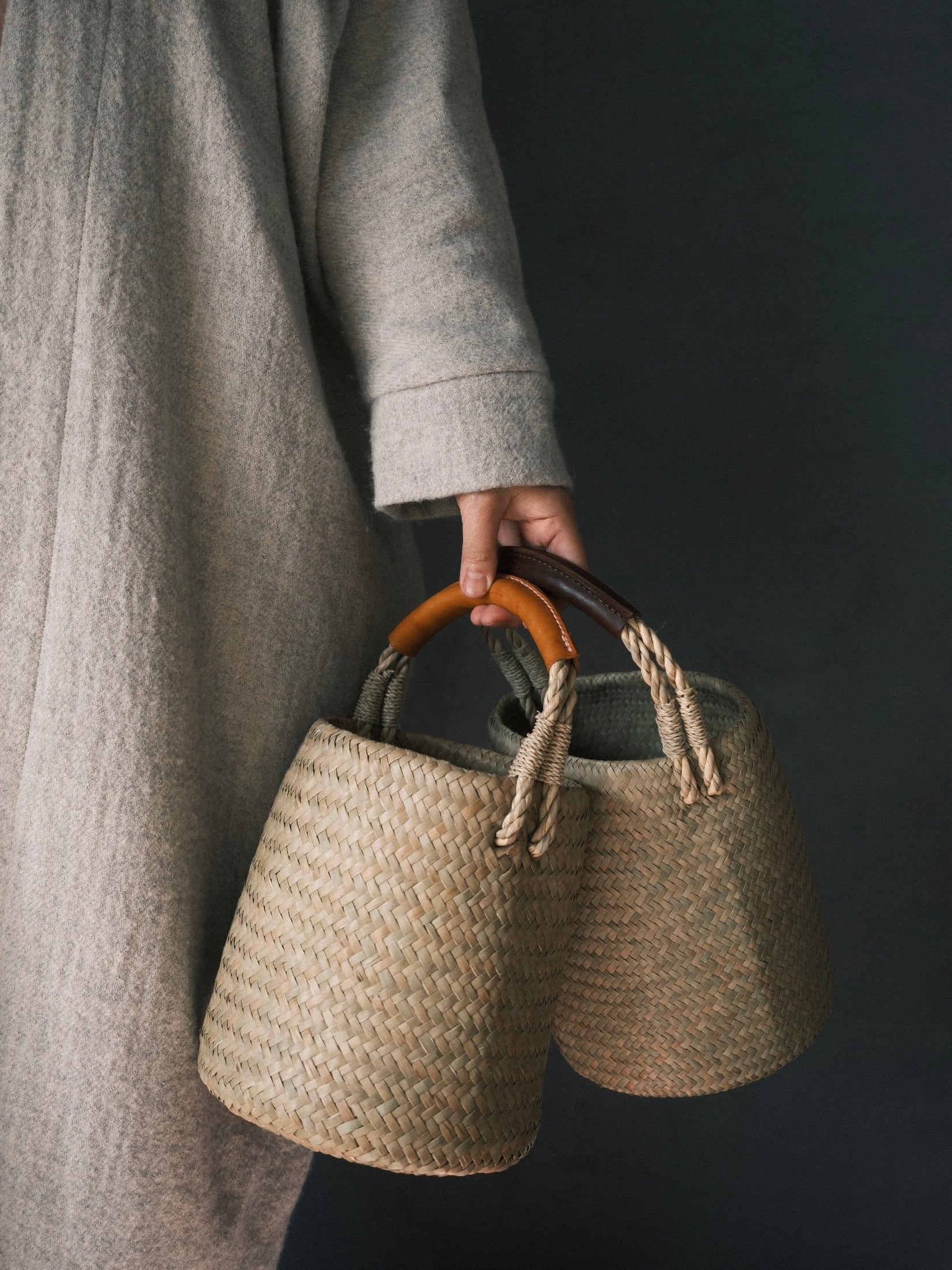 ※手作業で編まれているため、サイズや持ち手の長さ、形の出方には若干の個体差がございます。ひとつひとつ異なる表情としてお楽しみください。