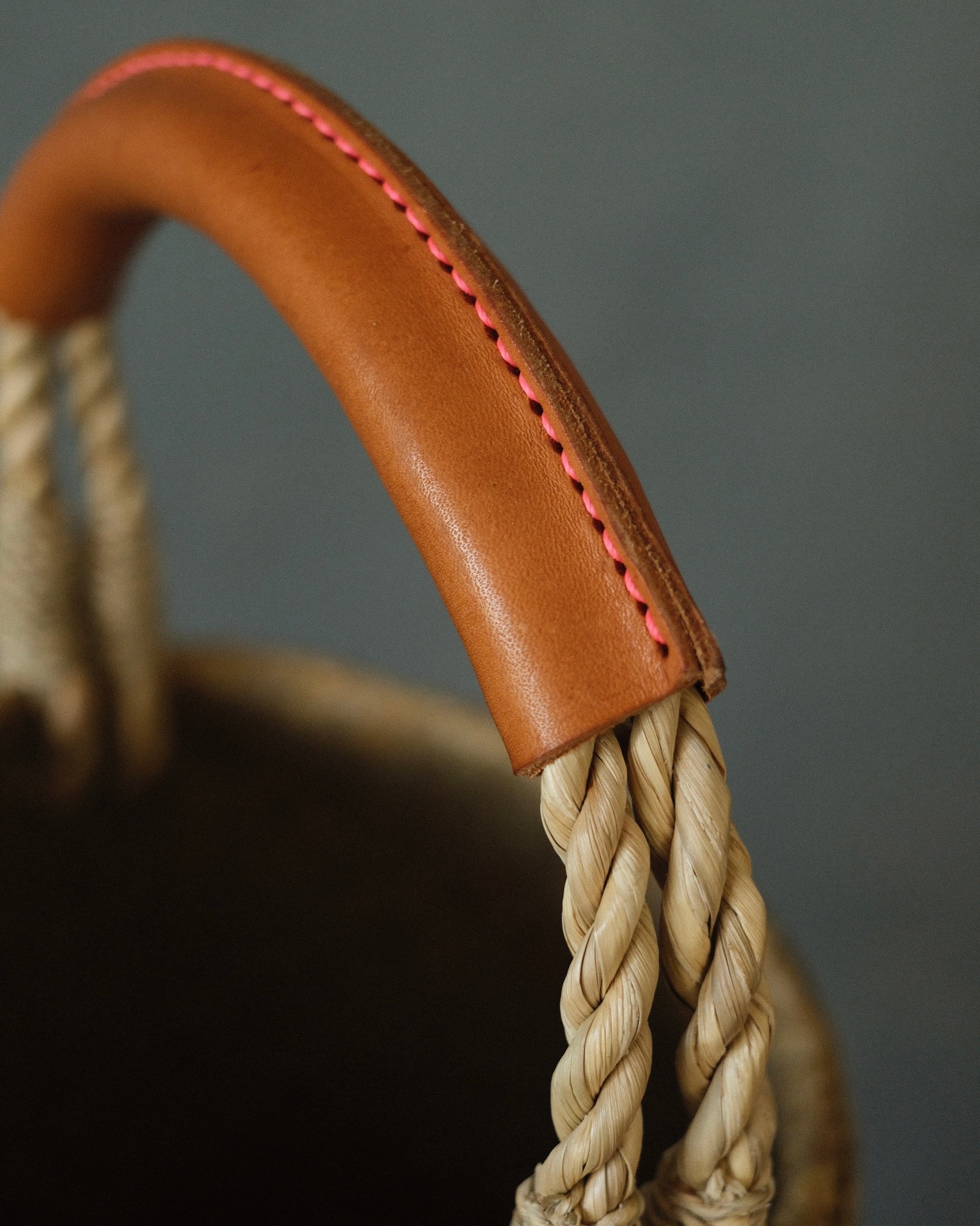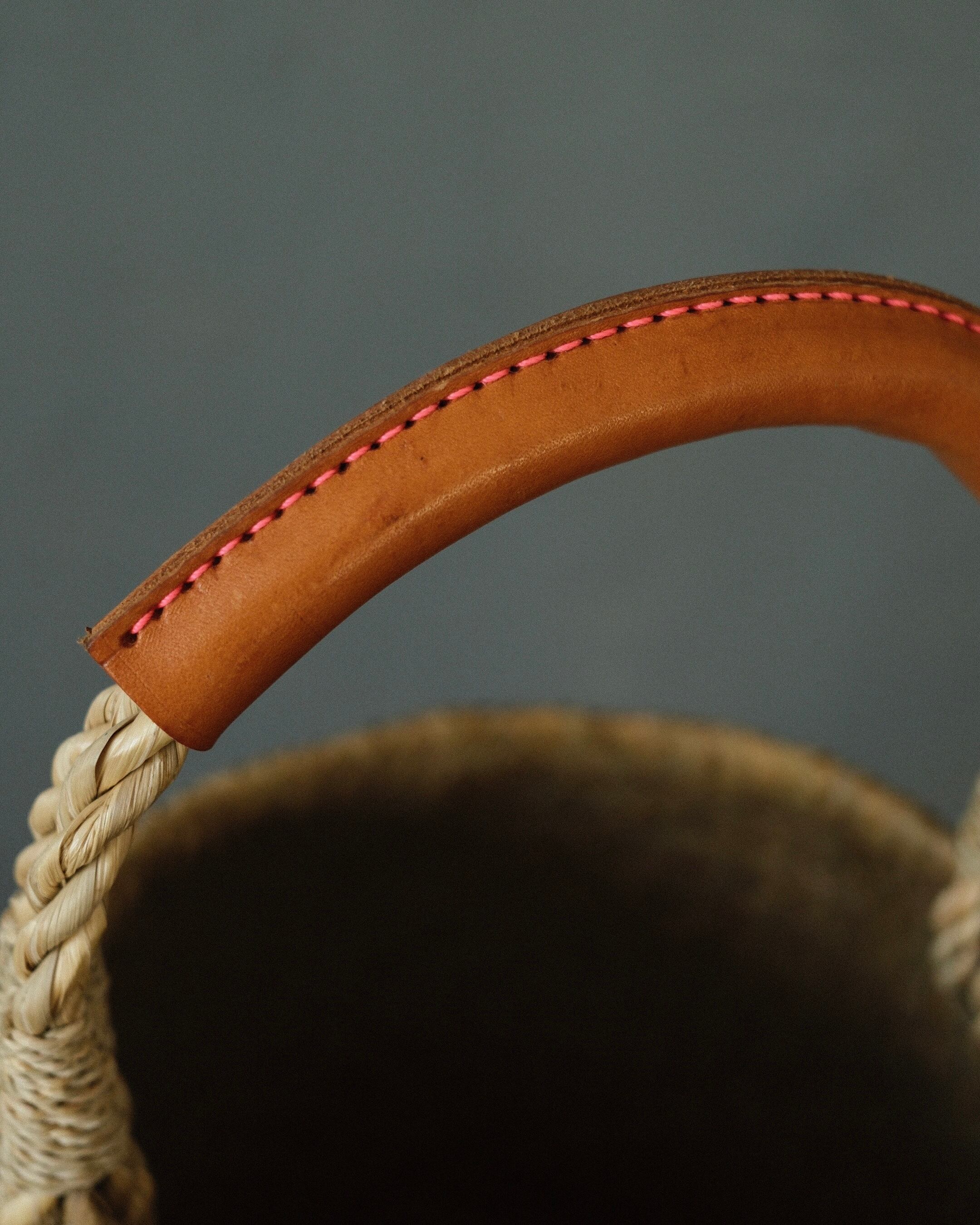 カチュー(水草)Tank Basket – Leather Handle Light Brown ステッチはピンク 画像5-7枚目