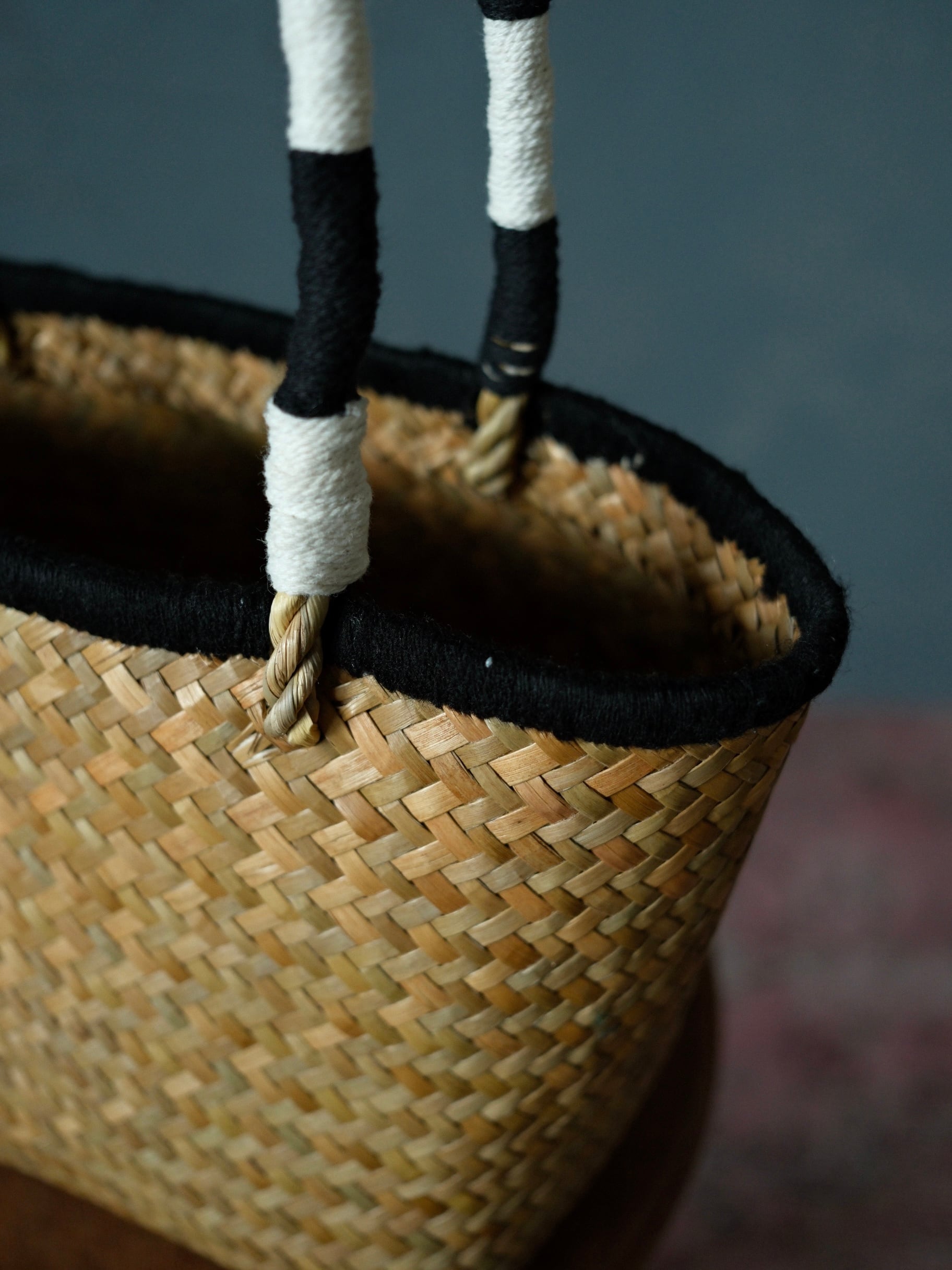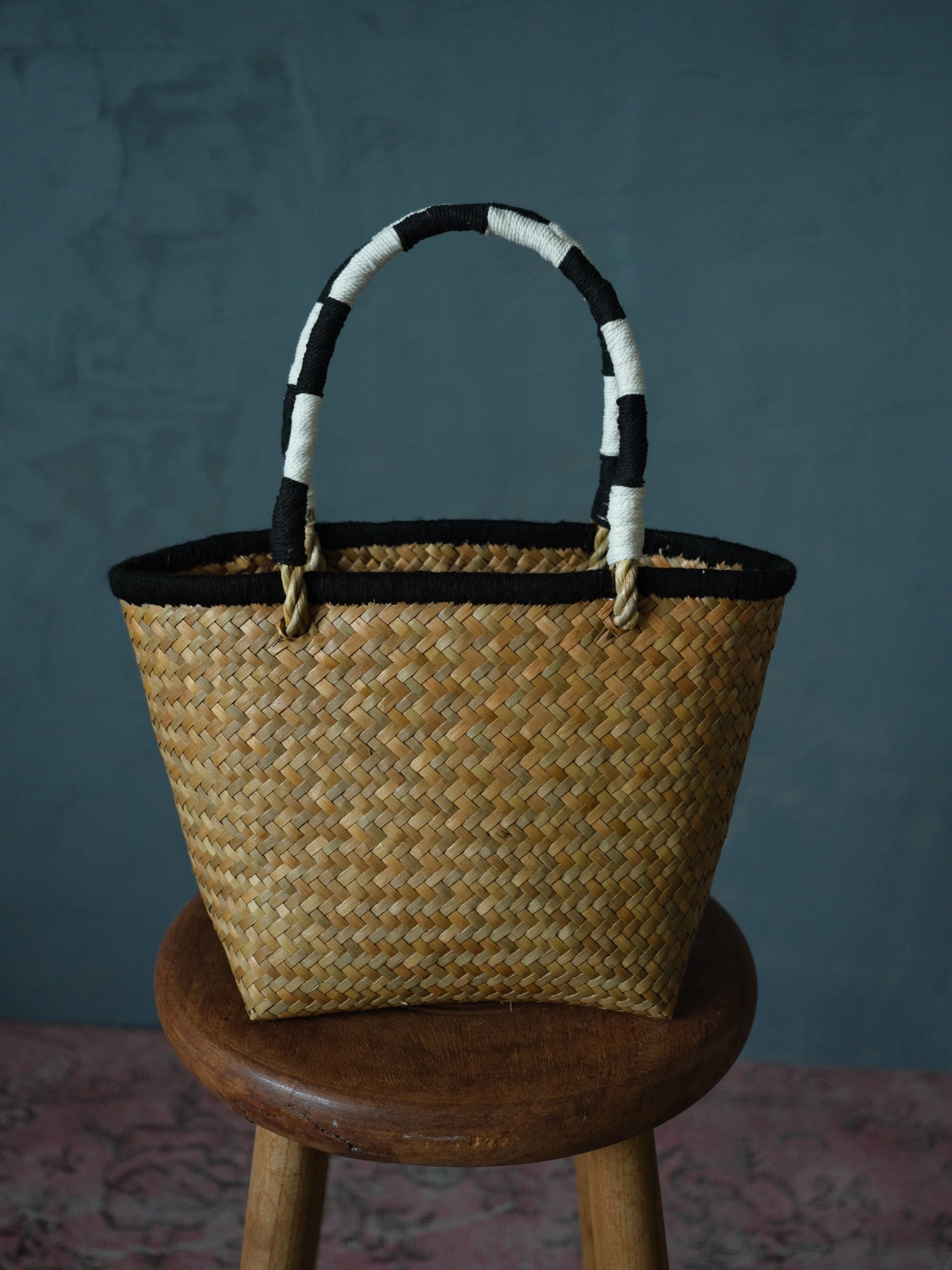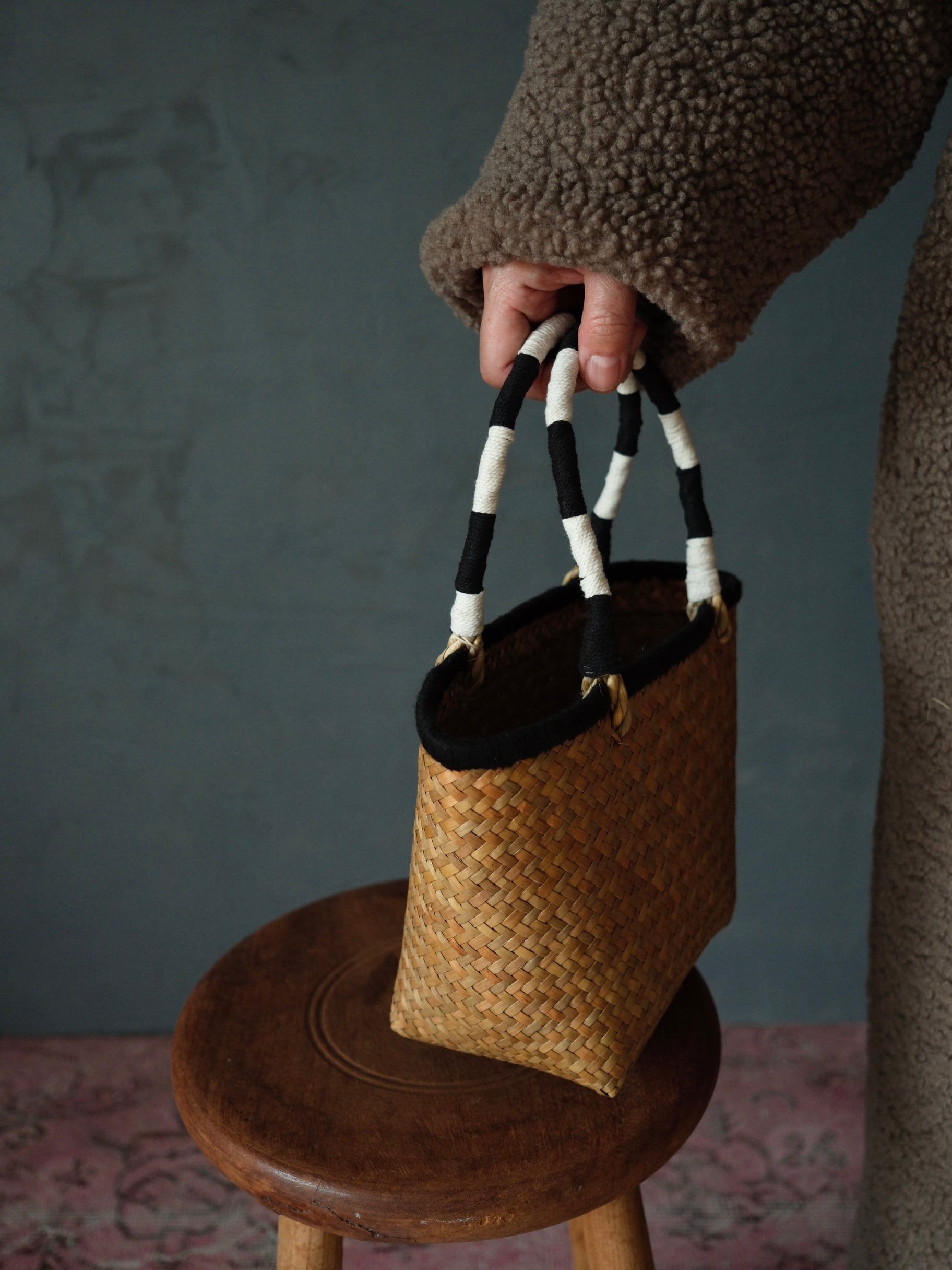 カチュー(水草)黒と白の持ち手が可愛く映える一点物のミニトートバッグ(HARD)硬めの質感