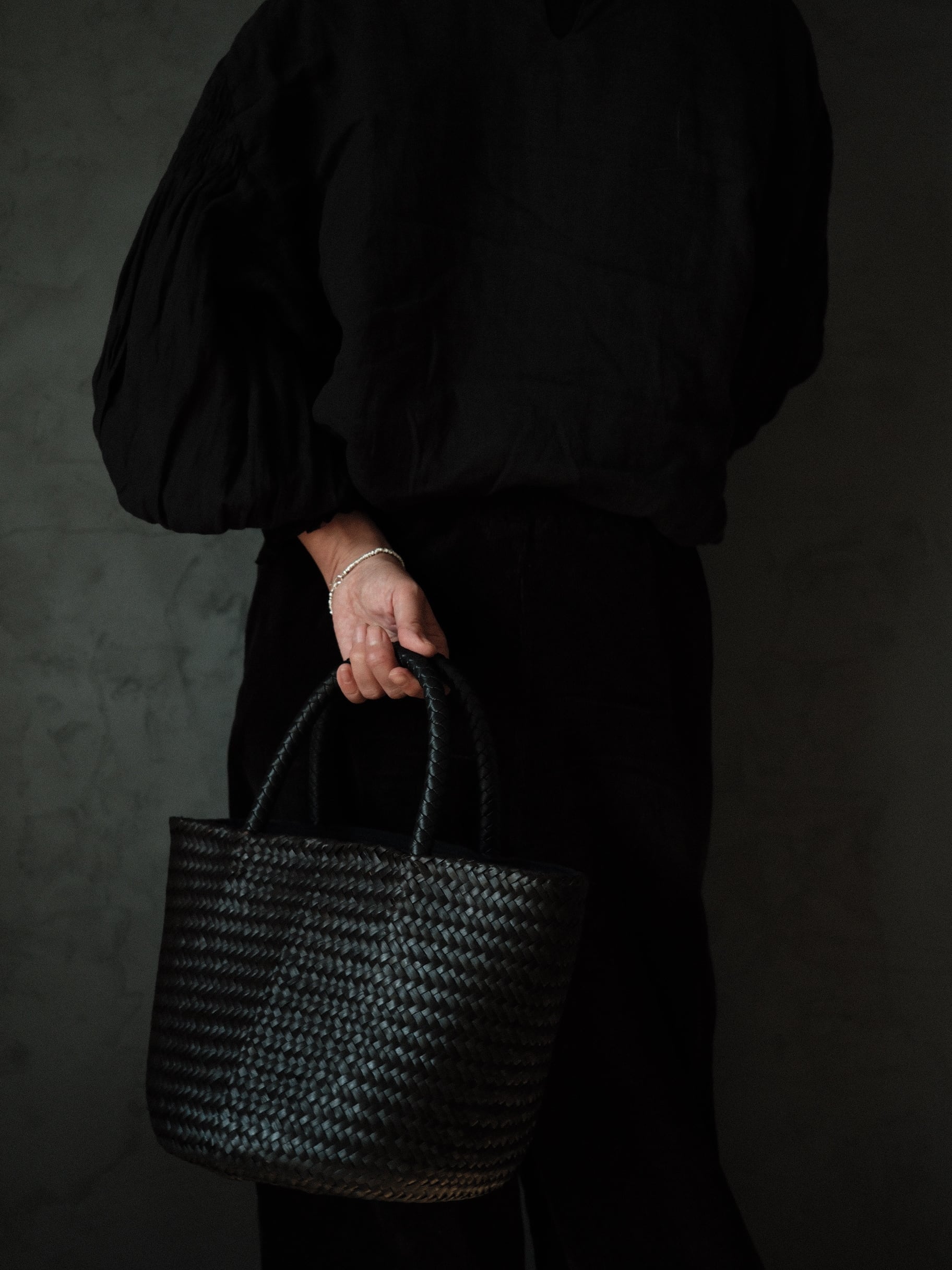 装いを選ばず、黒のワントーンコーデにも、