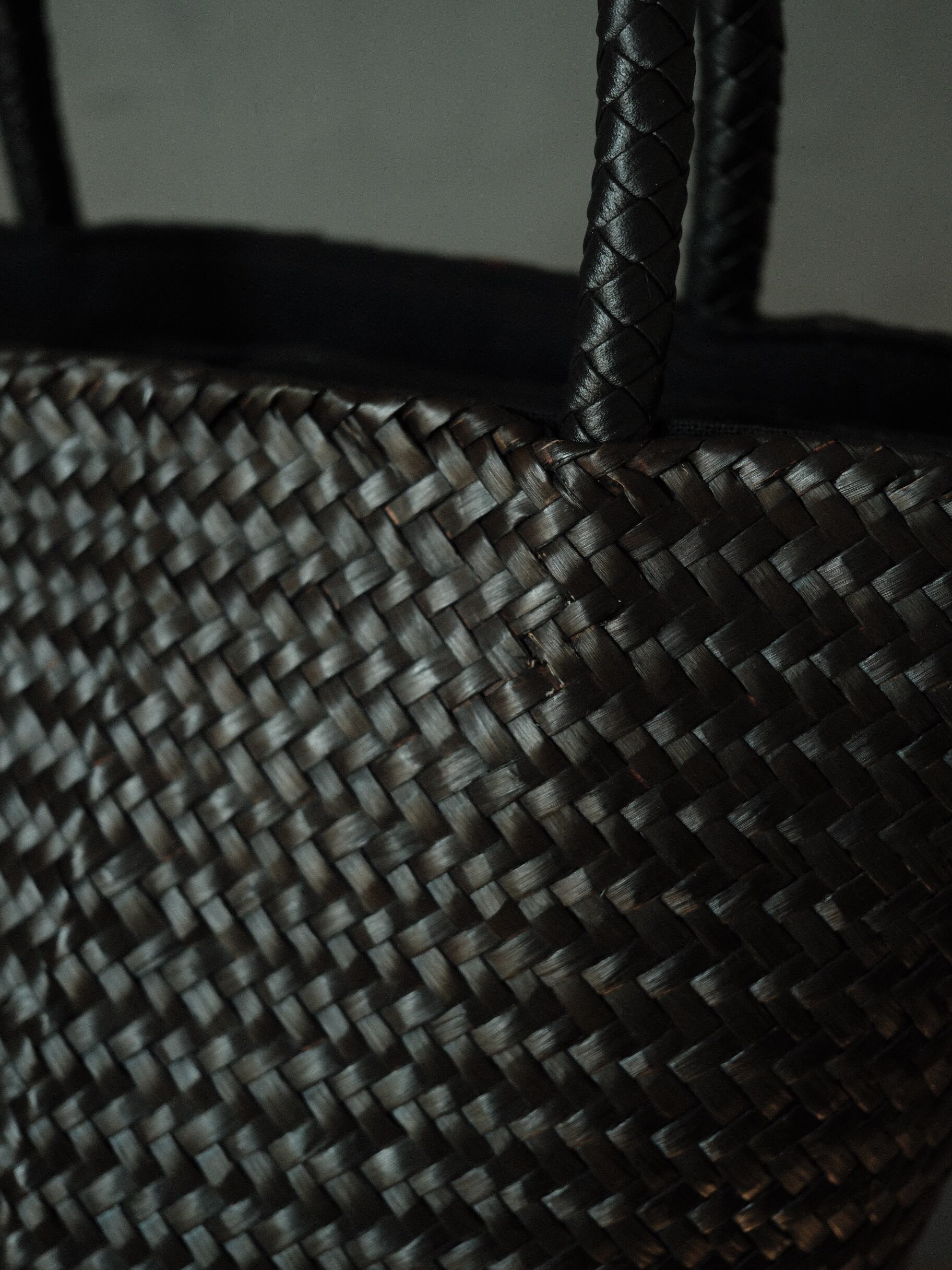 水草を筒状に編み込んだハンドルは