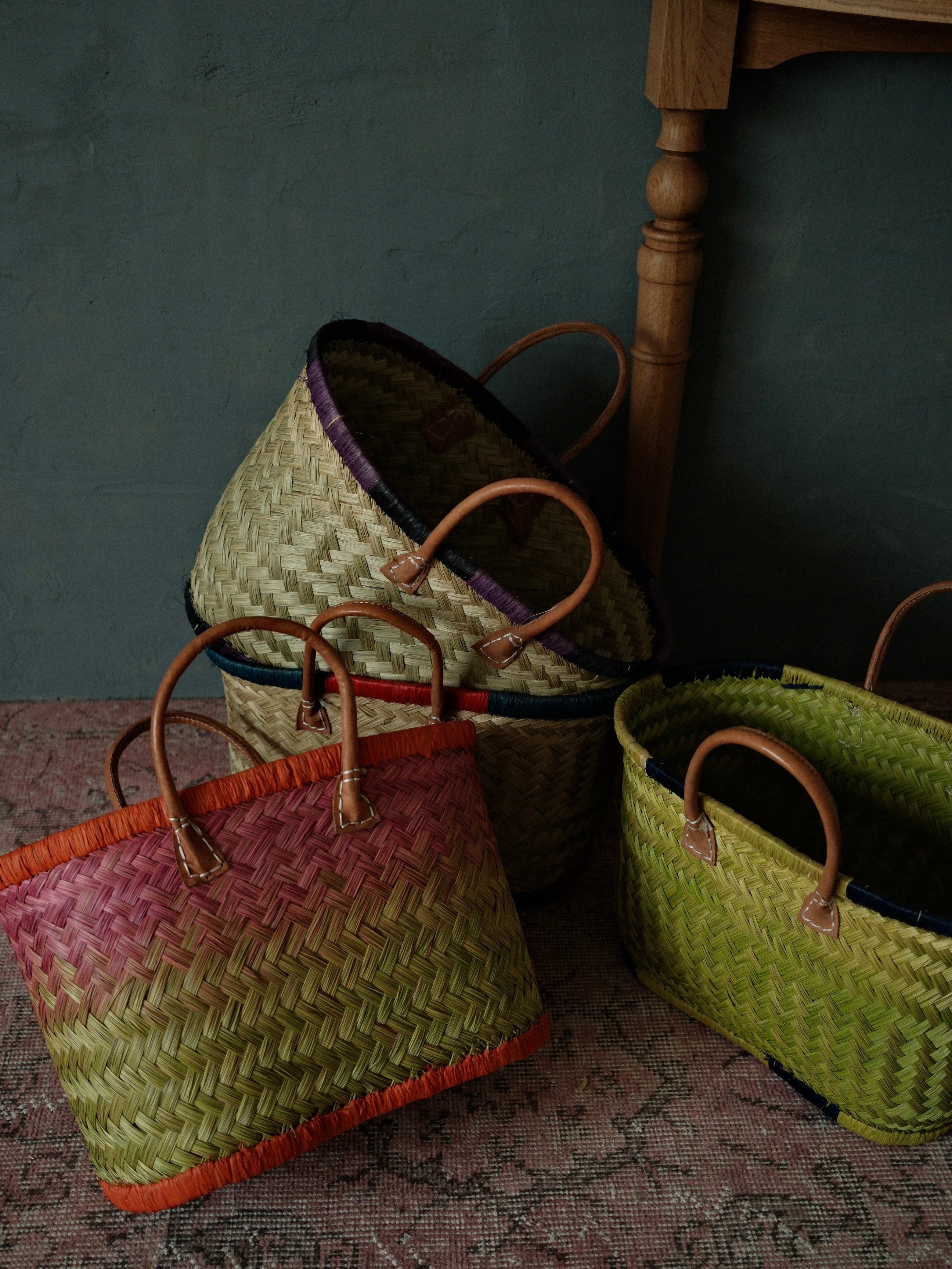 当店のかごやバッグは、自然素材を使用し、