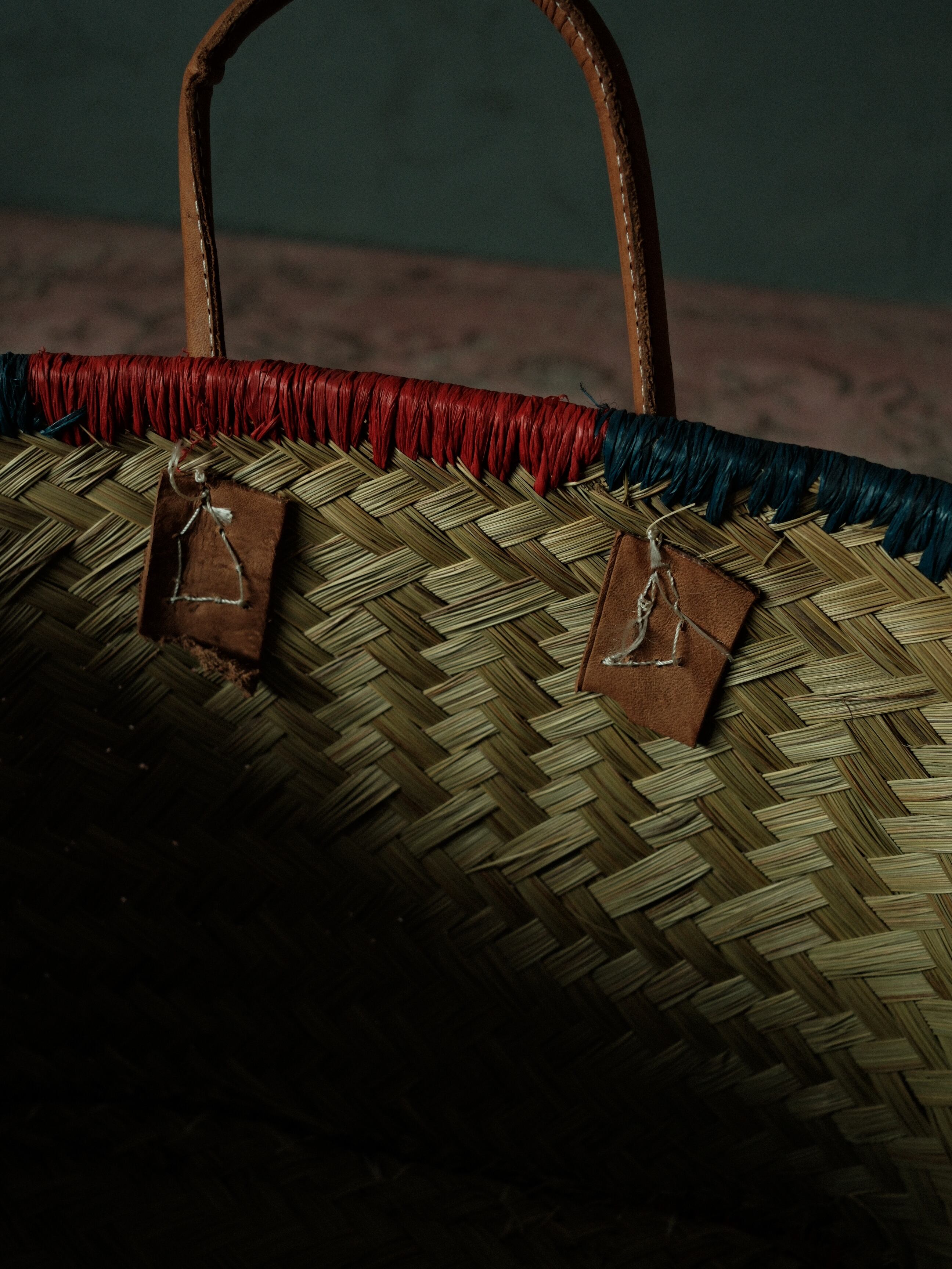 手仕事が生む、ゆらぎの美しさ ストロー素材の彩りトートバッグ NATURAL &RED