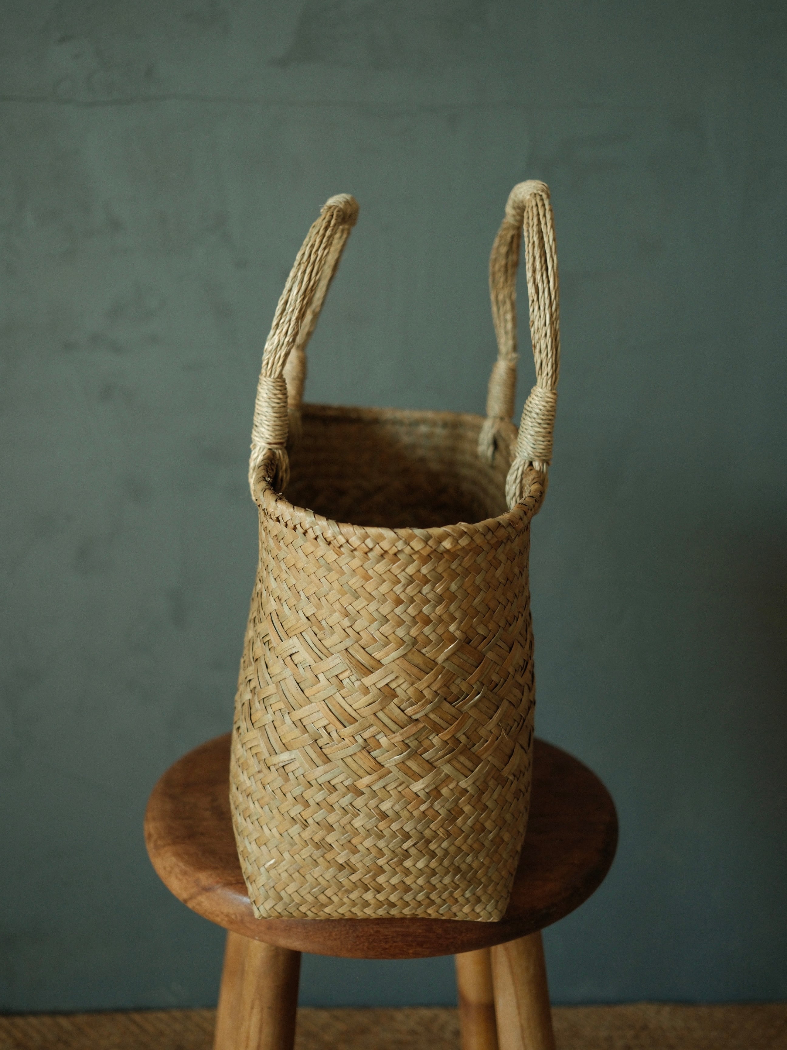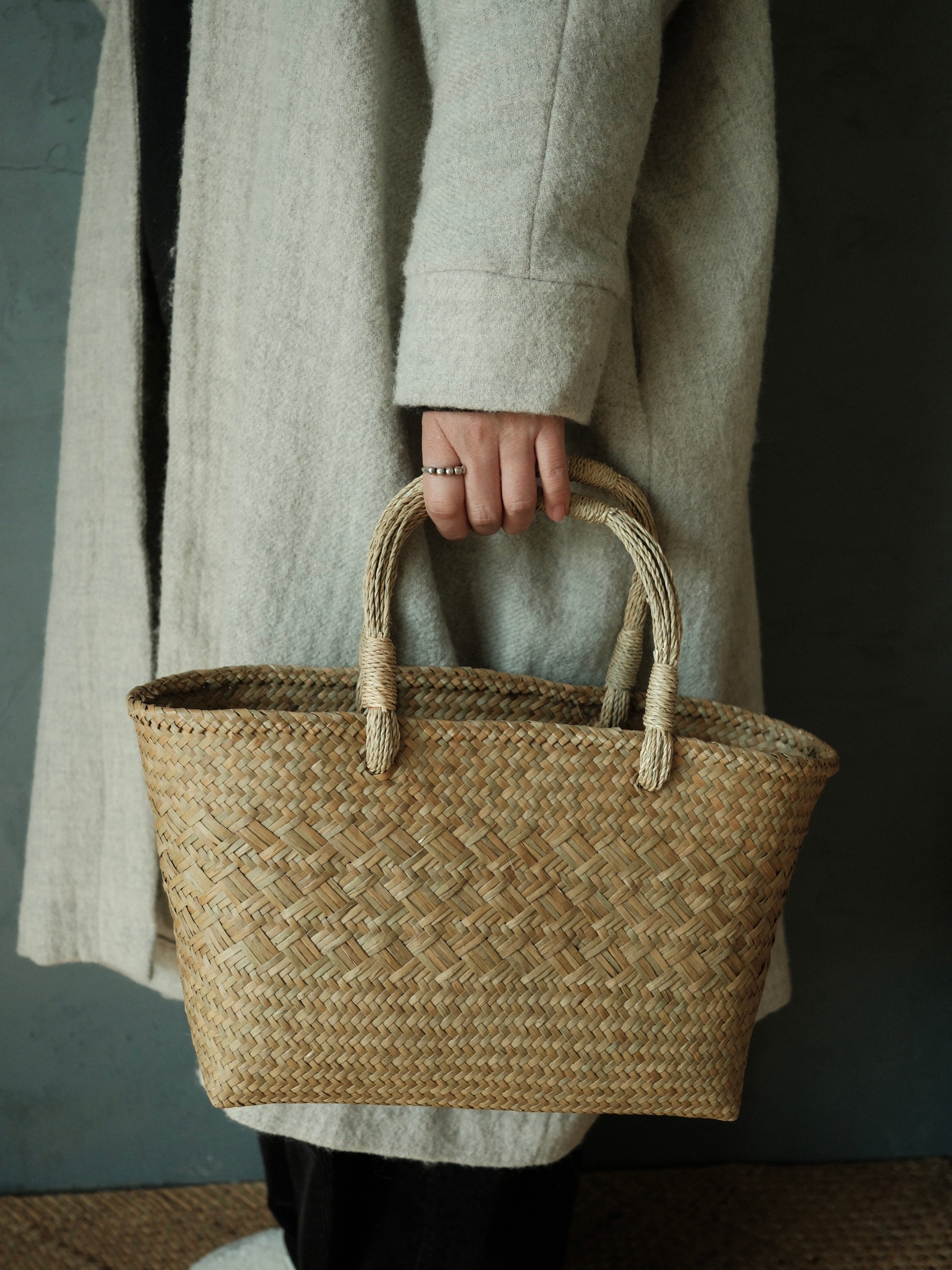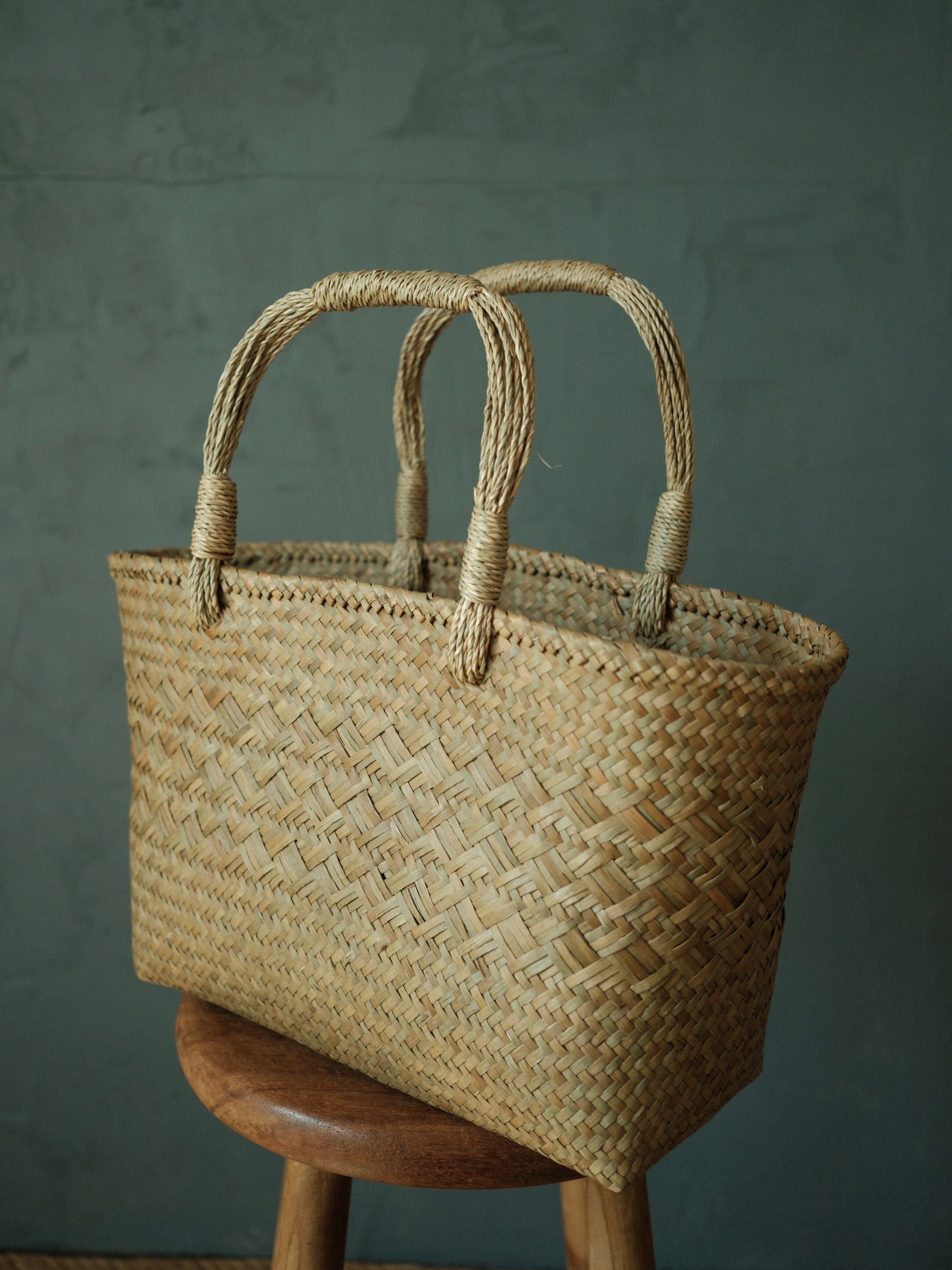 手仕事で丁寧に編み上げられた水草バッグ。