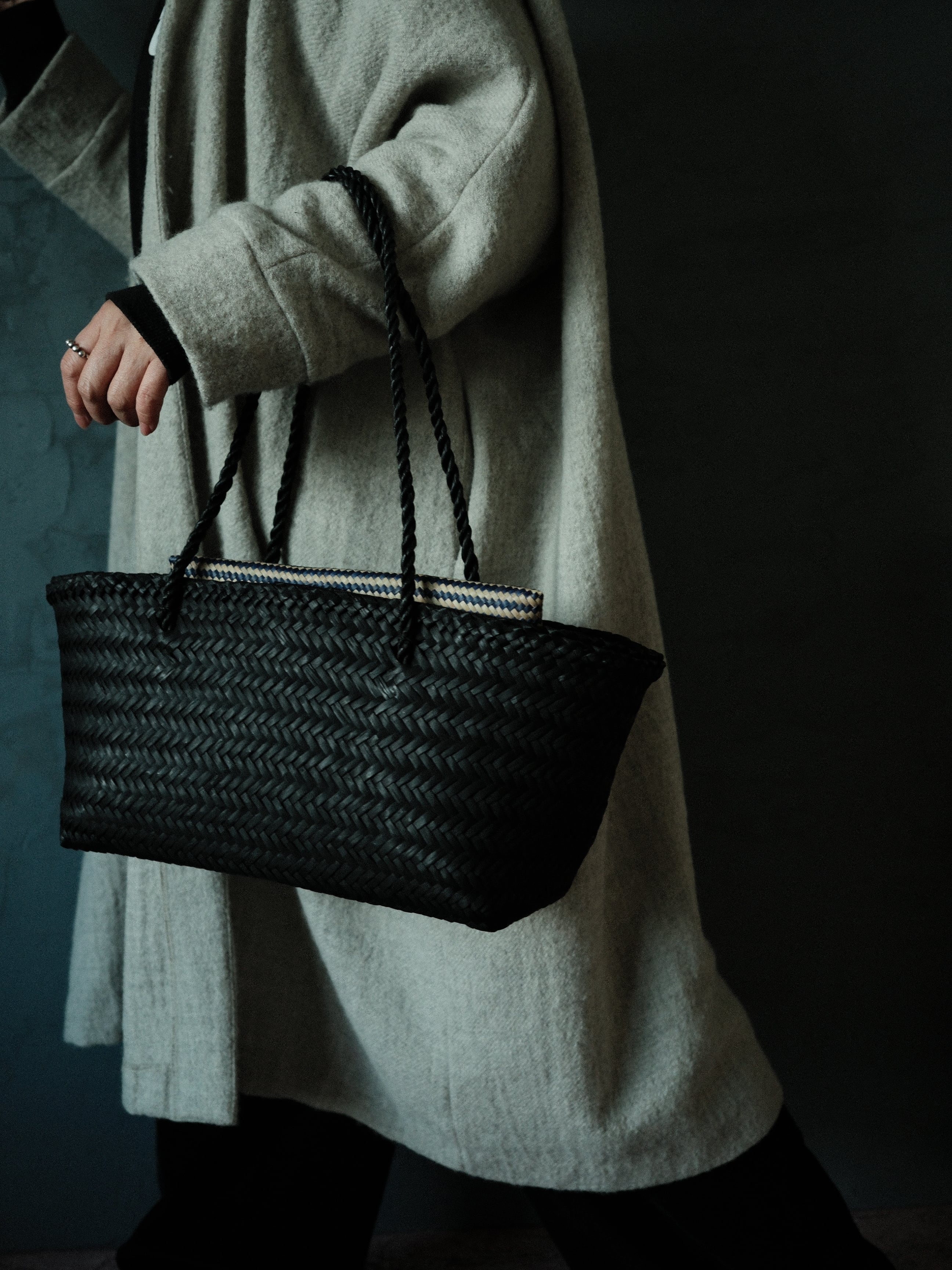 薄手のコートやニットであれば肩掛けも可能。