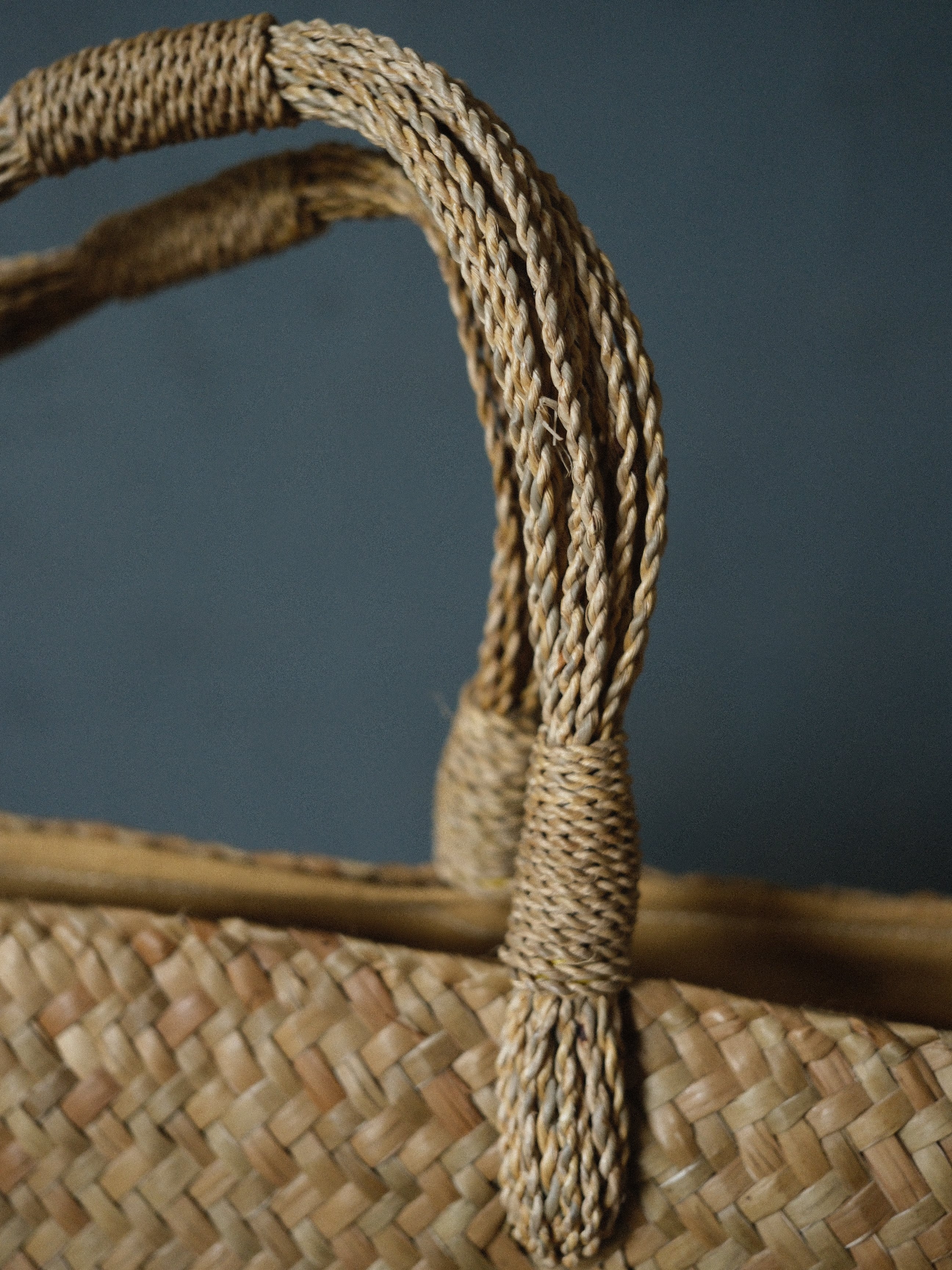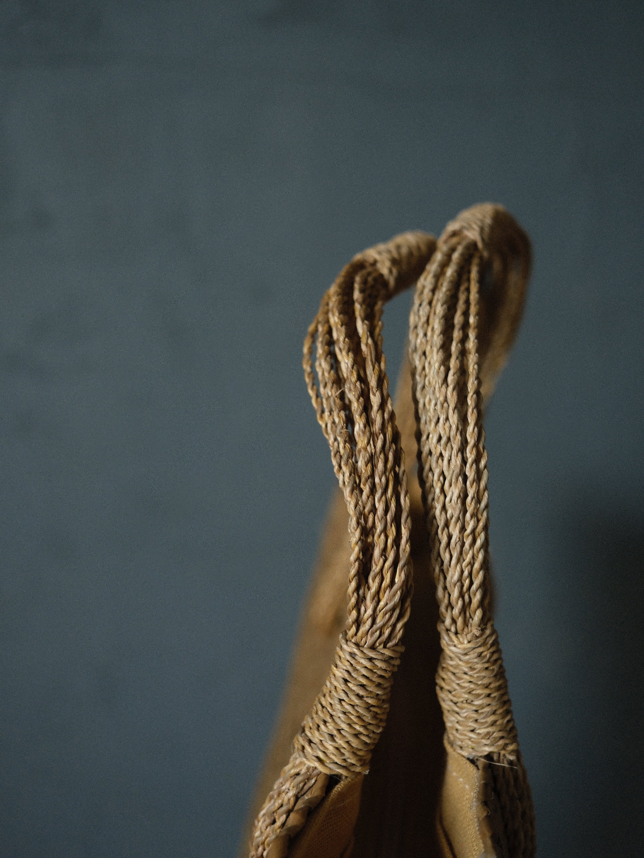 カチュー(水草)上部に広がるエレガントなトートバッグ ベージュ (HARD) 硬めの質感