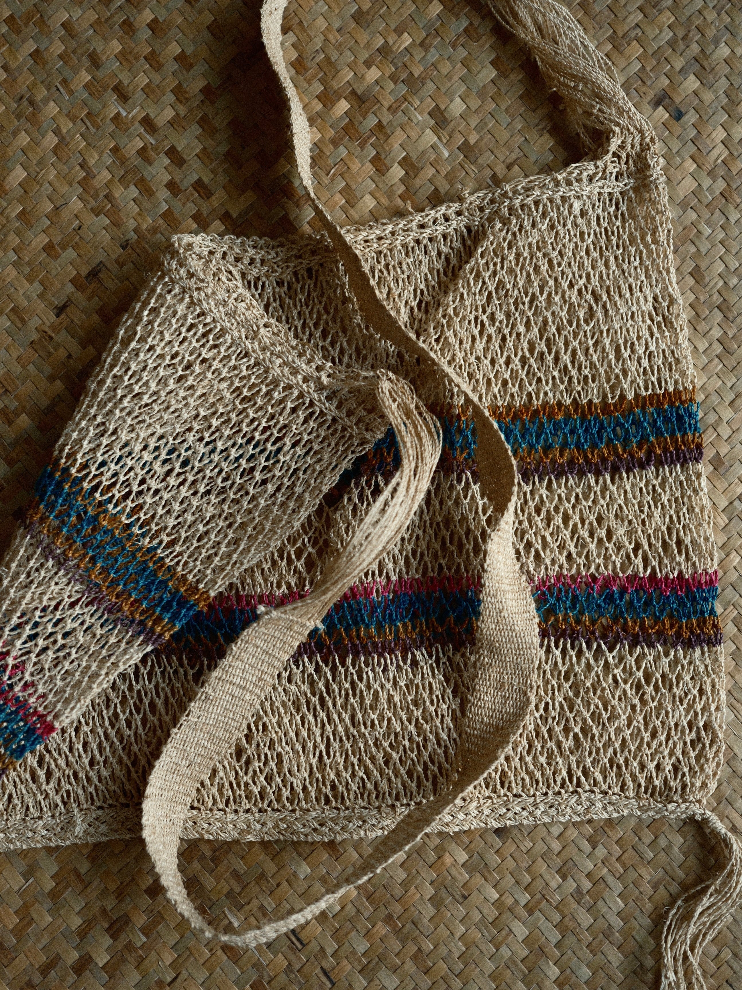 ラオス カム族 葛ショルダーバッグ ボーダー 02ネコポス送料¥390