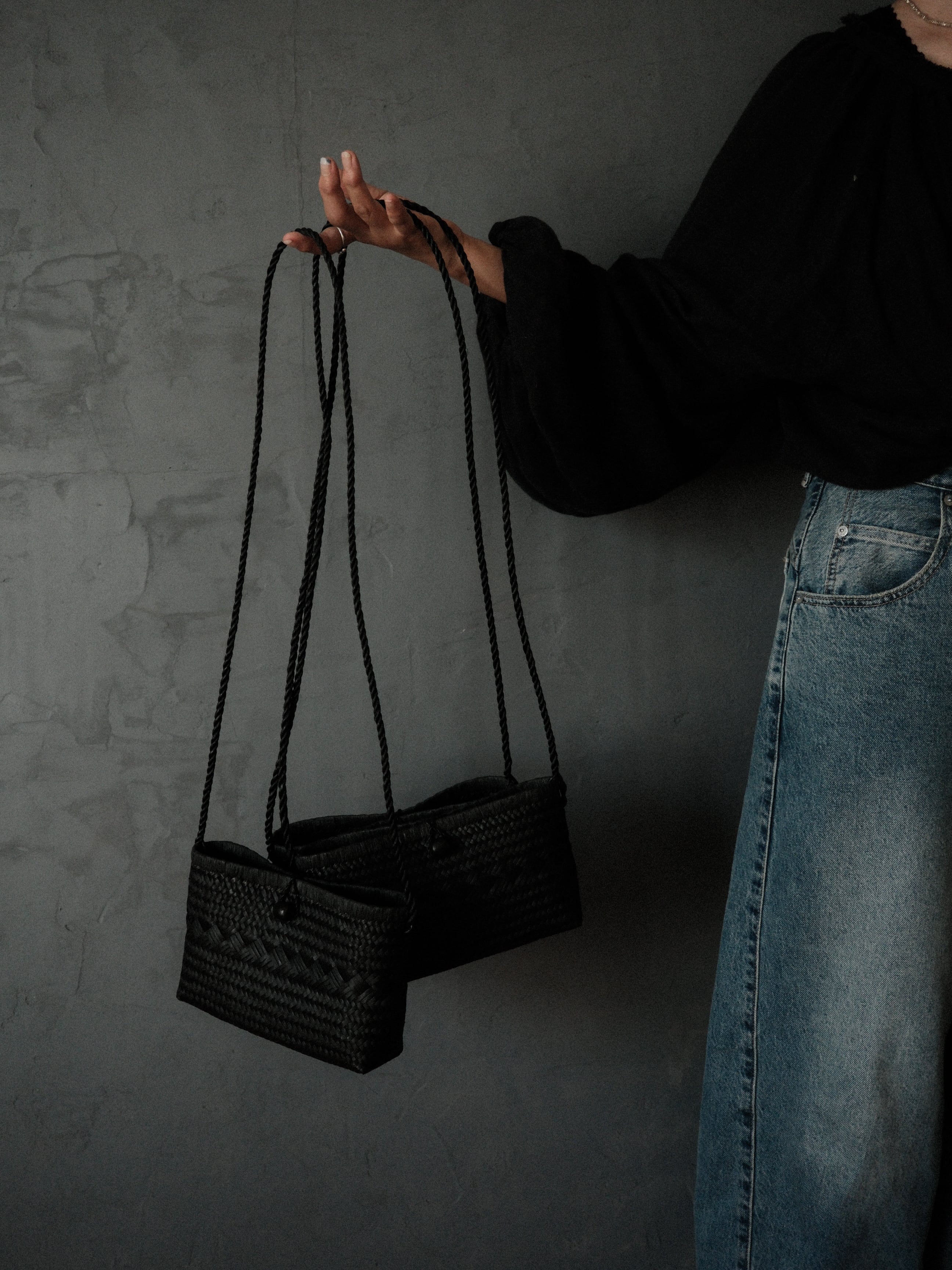 A様お客様ご予約分 (水草) 縁取りポシェット BLACK &SUMI 墨(SOFT) 柔らかい質感