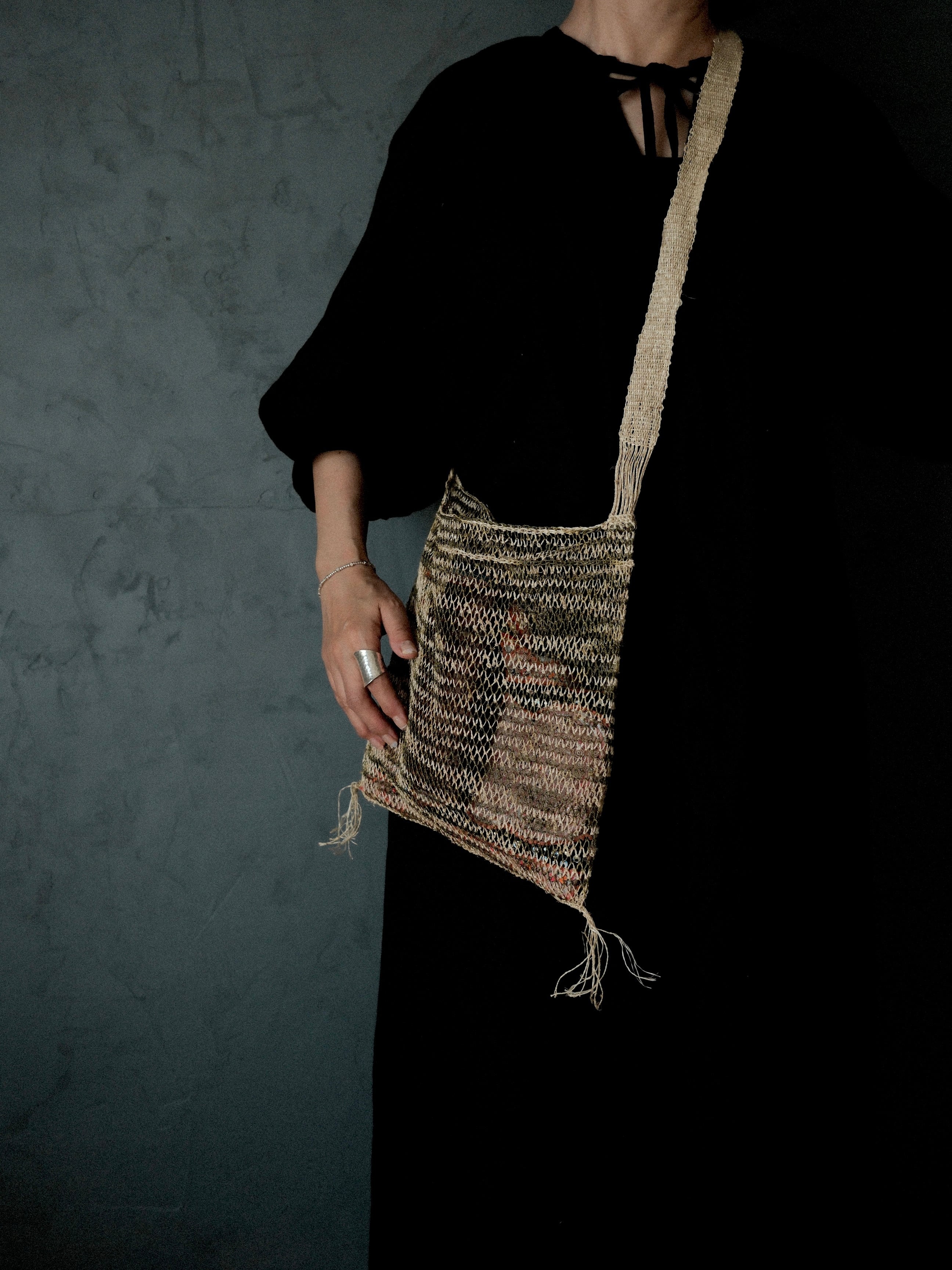 手作業で編み上げたショルダーバッグです。