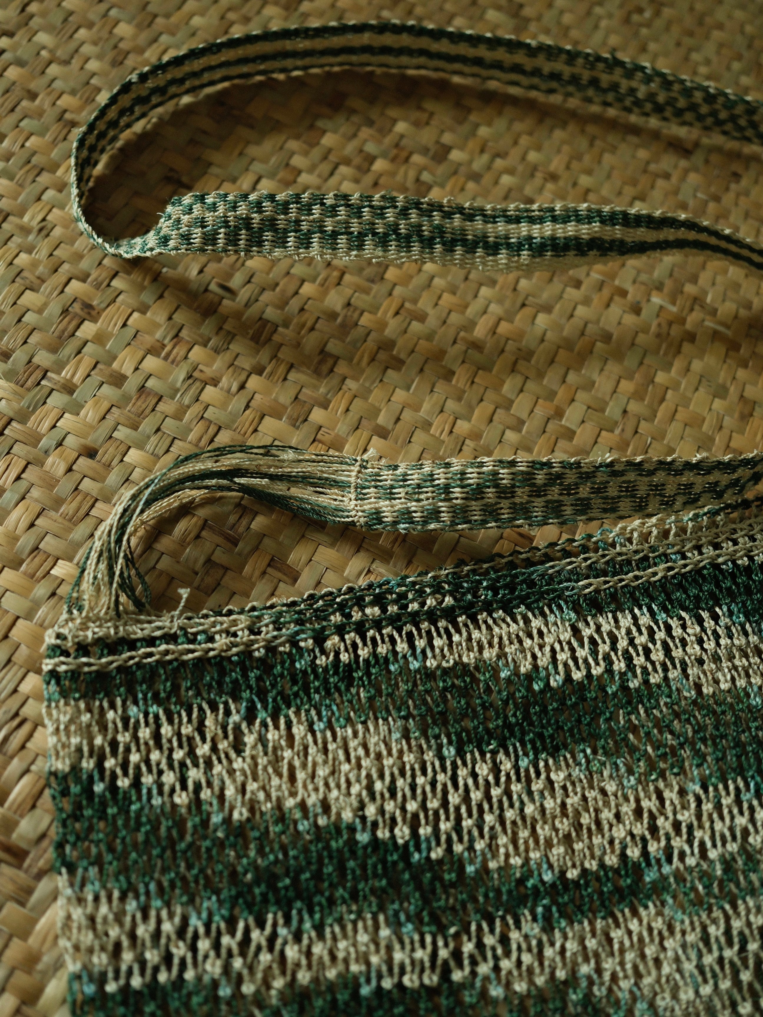 ラオス カム族 葛ショルダーバッグ 波のようにゆれる柄 Lサイズ ネコポス送料¥390 041